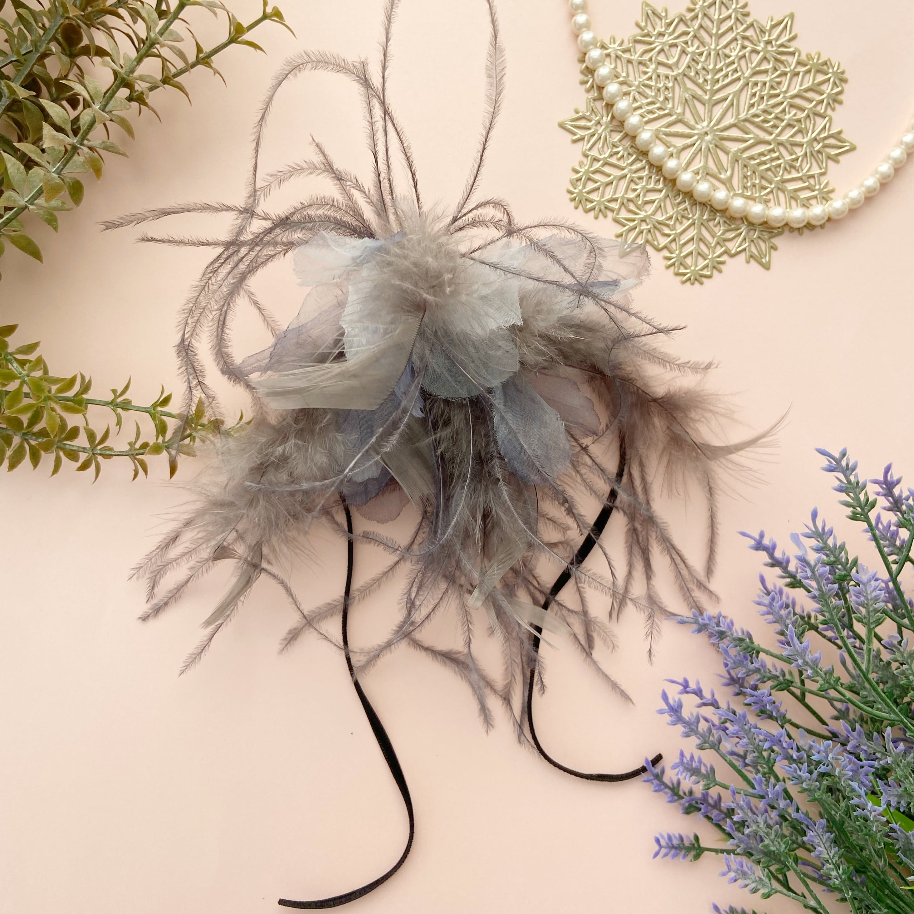 フェザーMIXコサージュ*グレーブルー*取付金具選択可能フォーマル*入学式*卒園式*結婚式などに