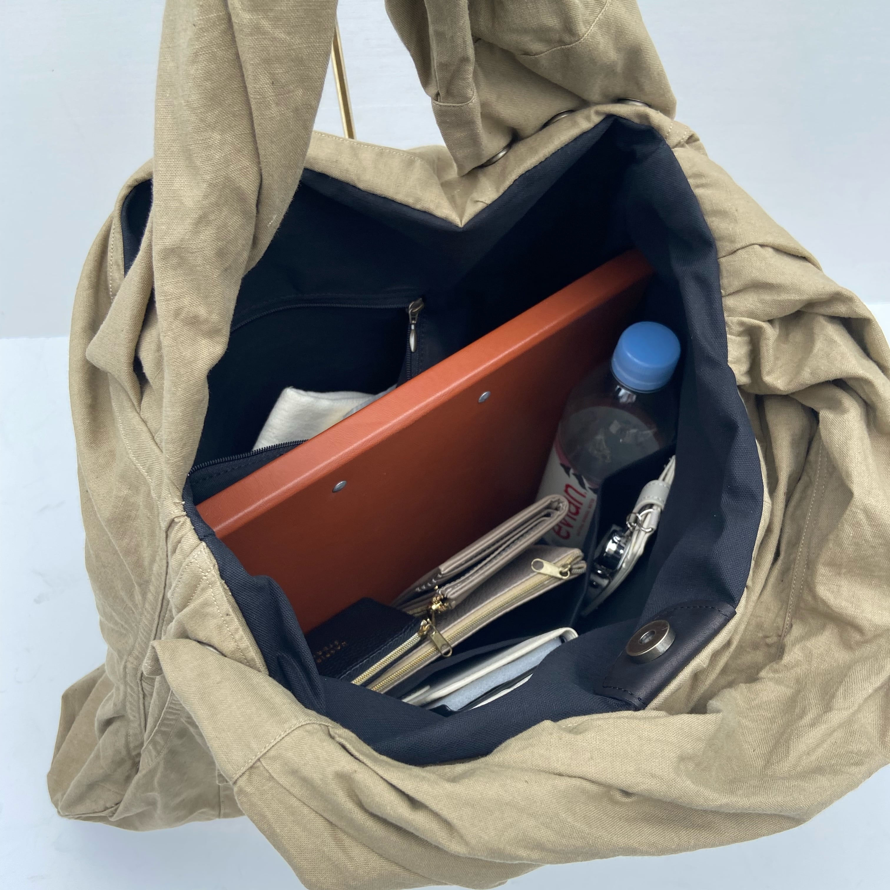 ミリタリーM47チノシャツリメイク*2WAYショルダー*ベージュ*フランス軍*A4収納可