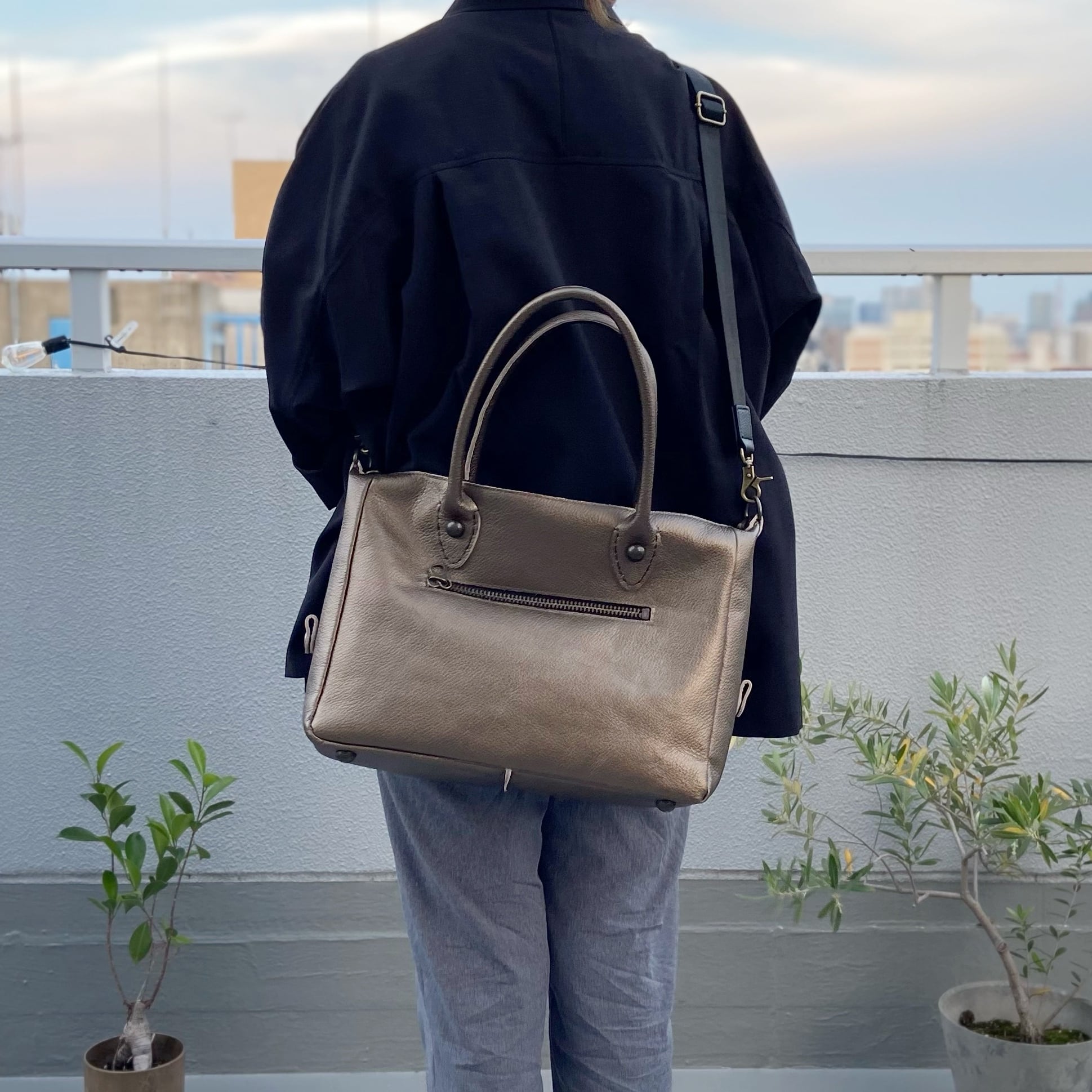 ●ハンドルは肩にも掛けられ、手持ちでもバランスが良いようなサイズ感に作りました。