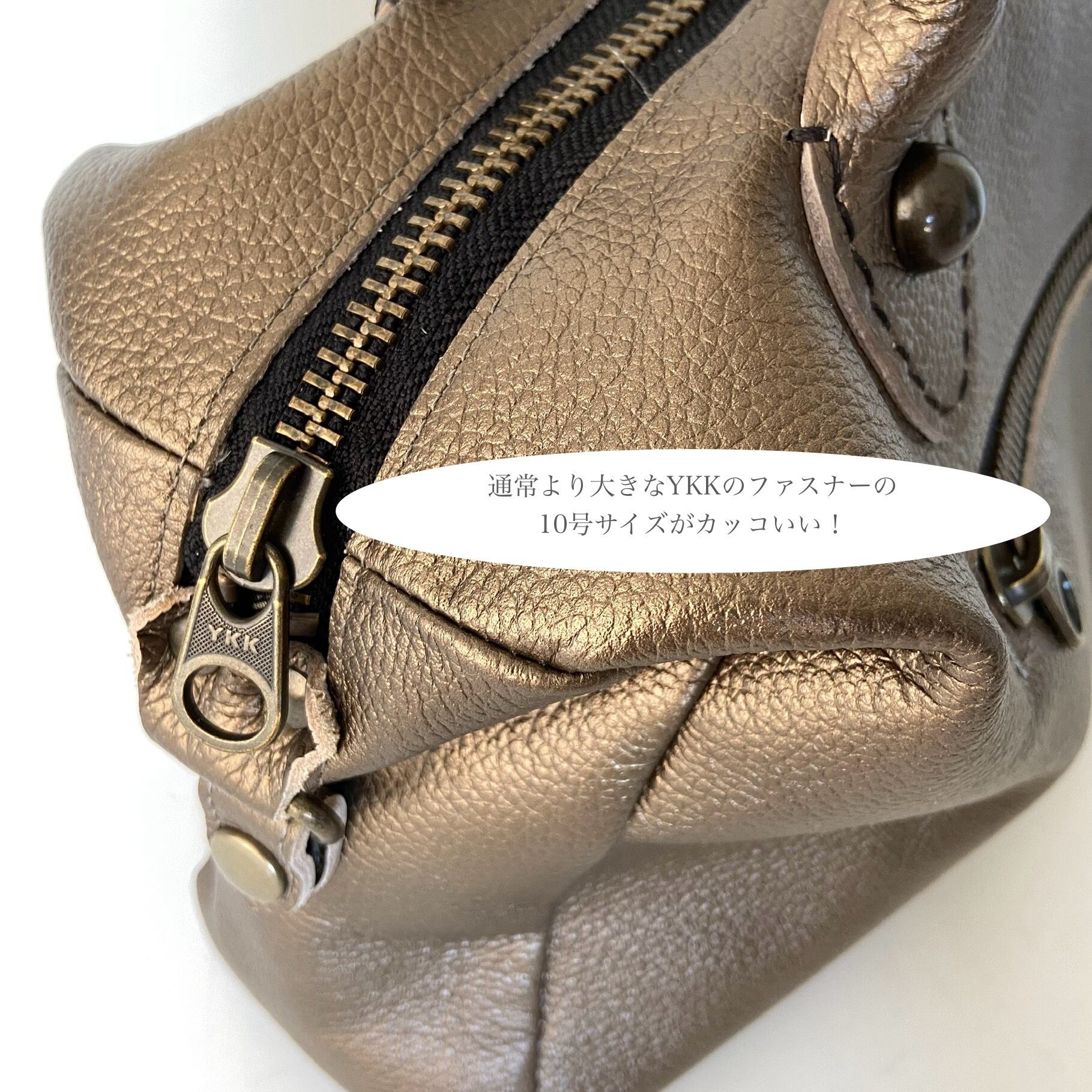 【1点もの】牛革&内側スカーフボストンバッグ*ブロンズ*A4サイズ