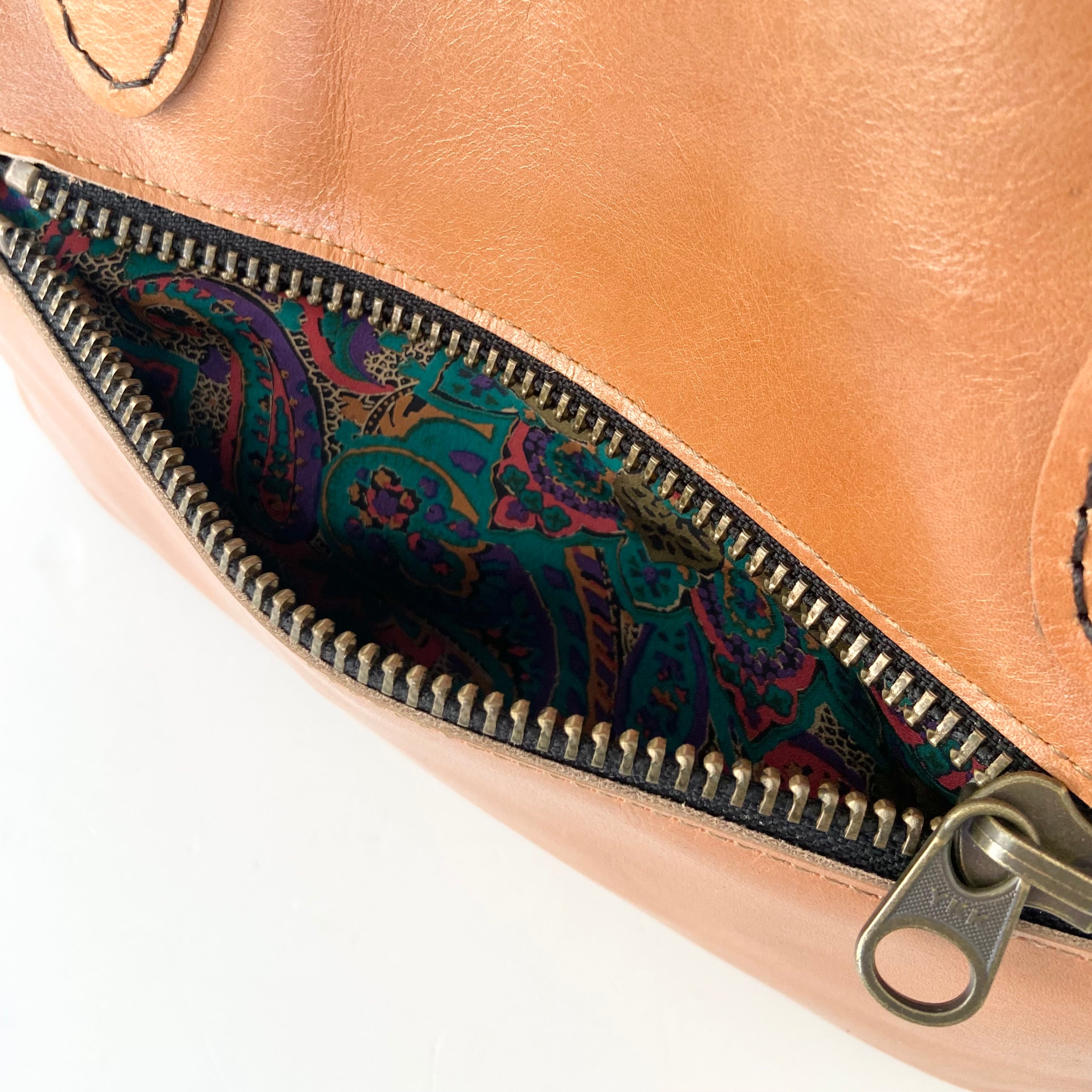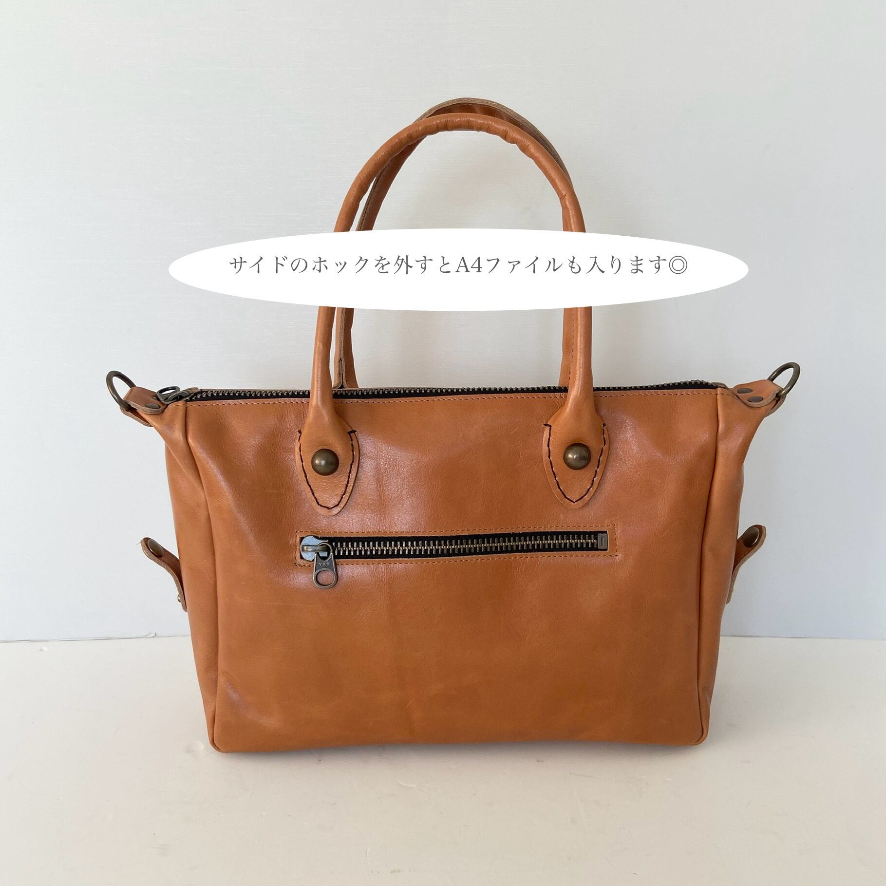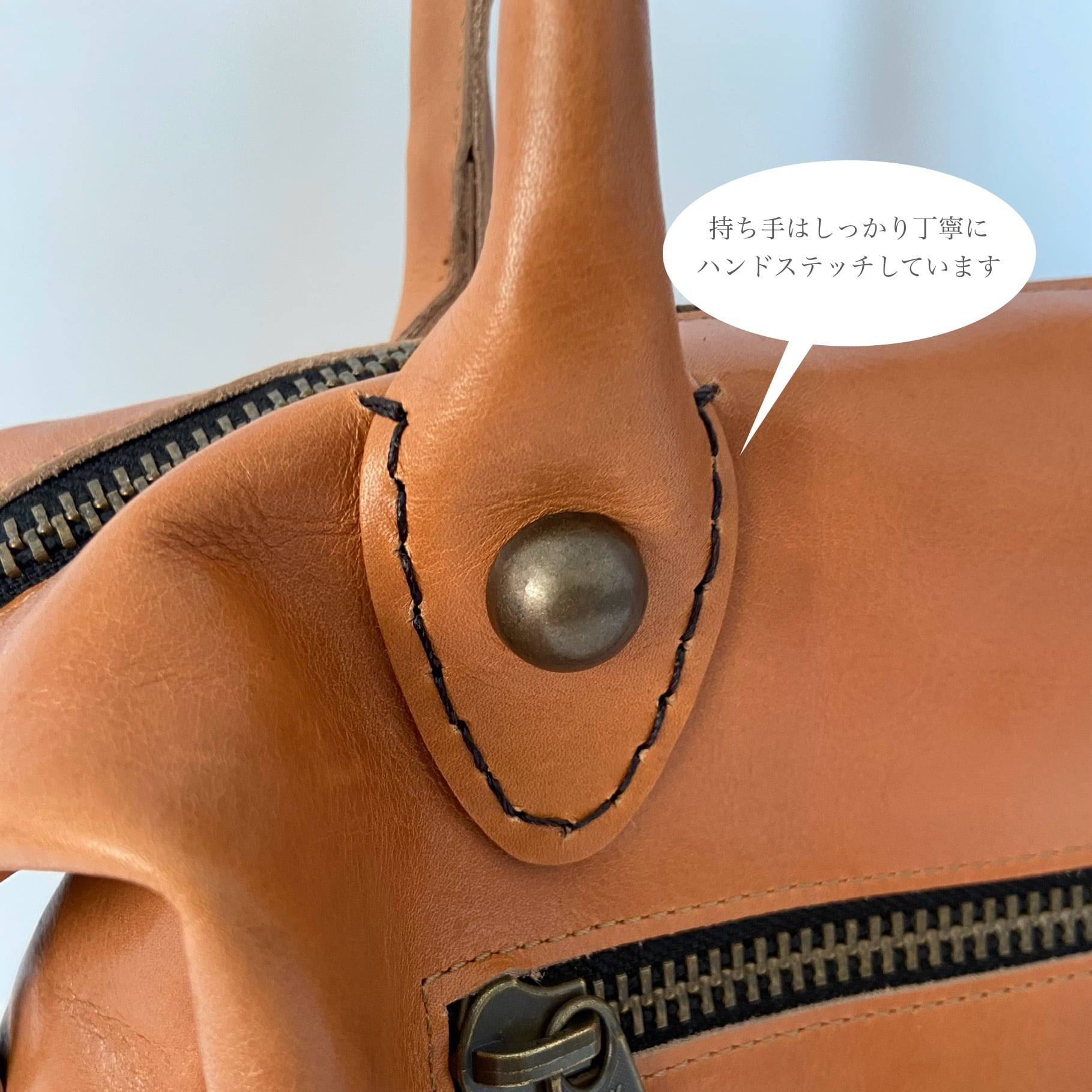【1点もの】牛革&内側スカーフボストンバッグ*キャメル*A4サイズ