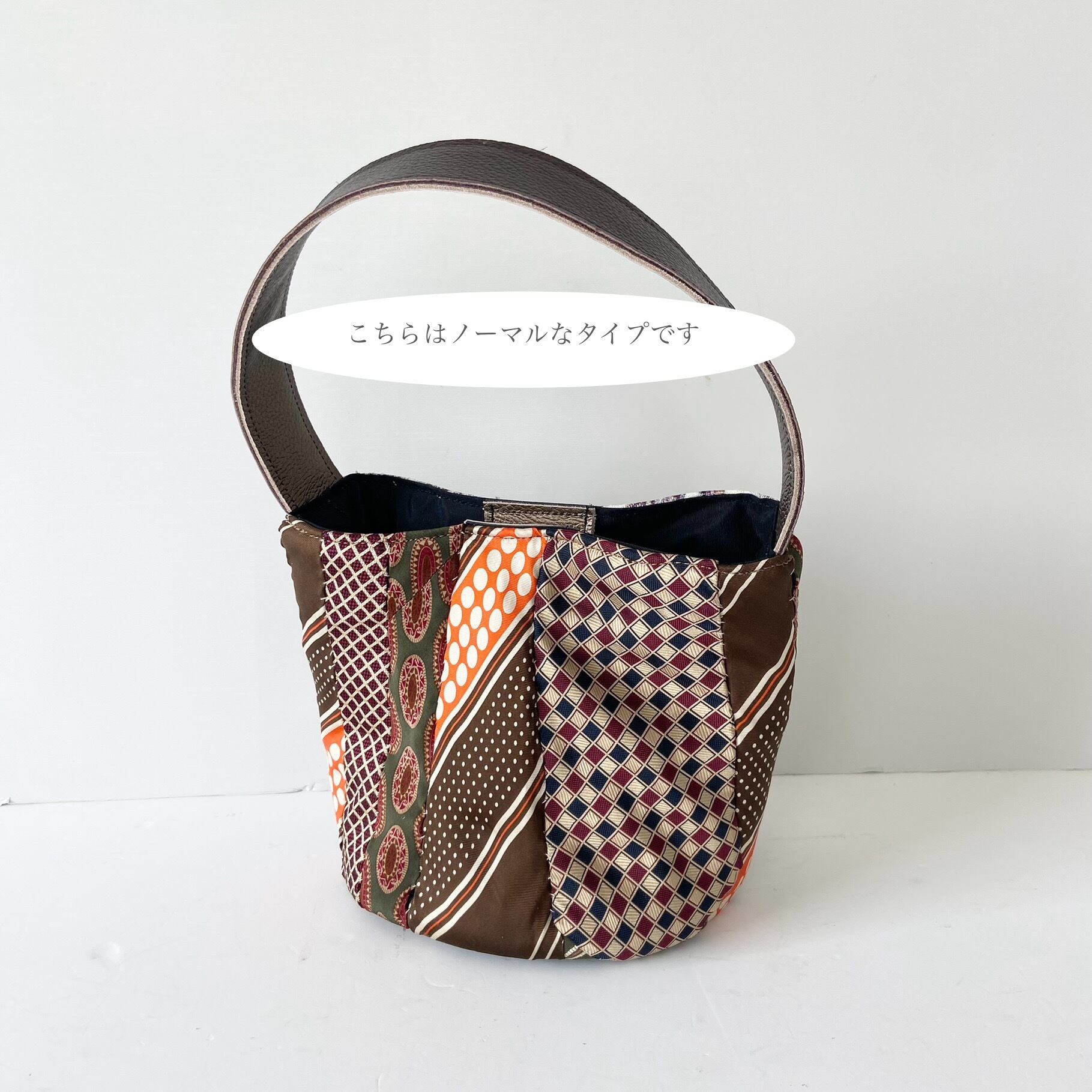 【1点もの】ネクタイ×ジャガード生地*バケツバッグ オプションでコサージュ付にも♡