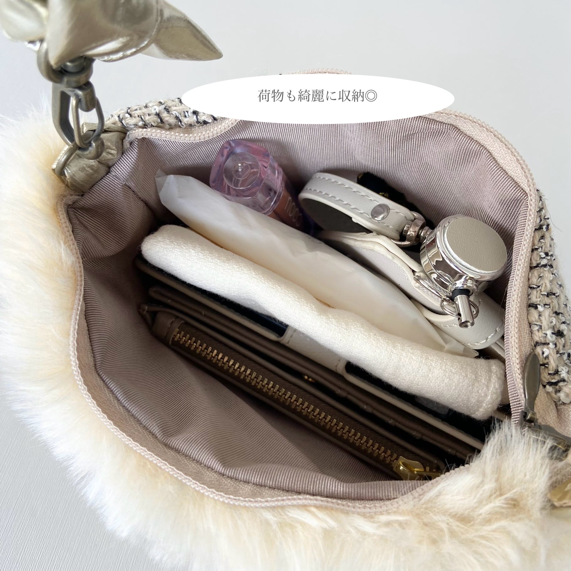 ふわふわで上質なエコファー素材を使用し、柔らかな手触りと温かみのある可愛いミニバッグです♡