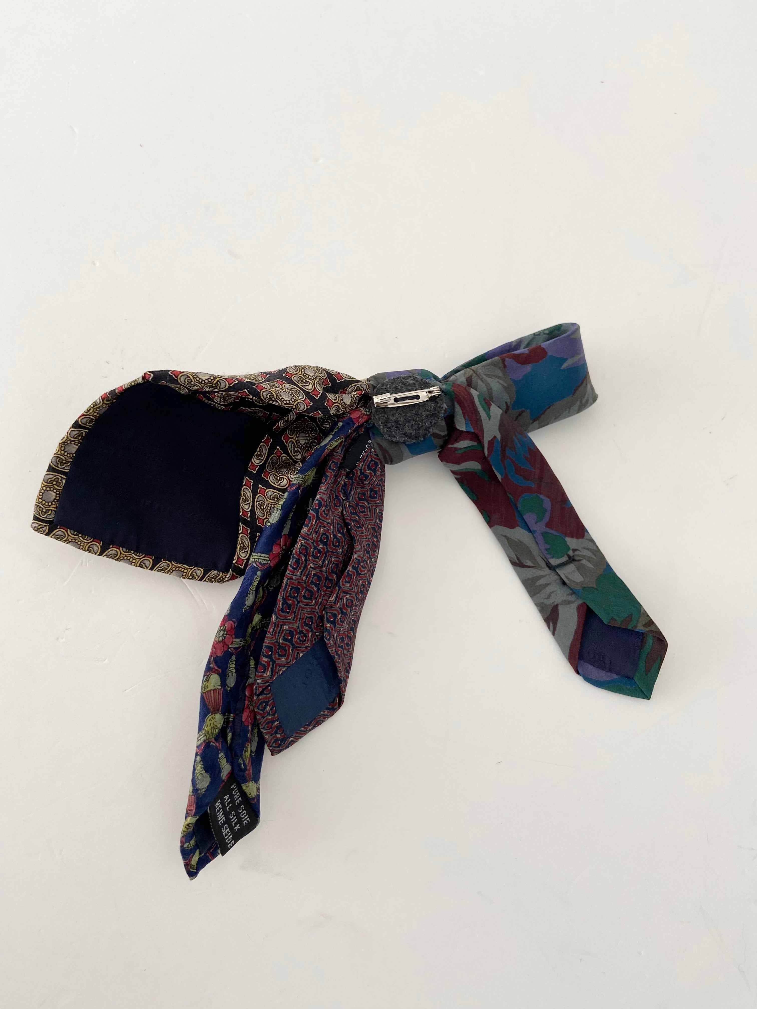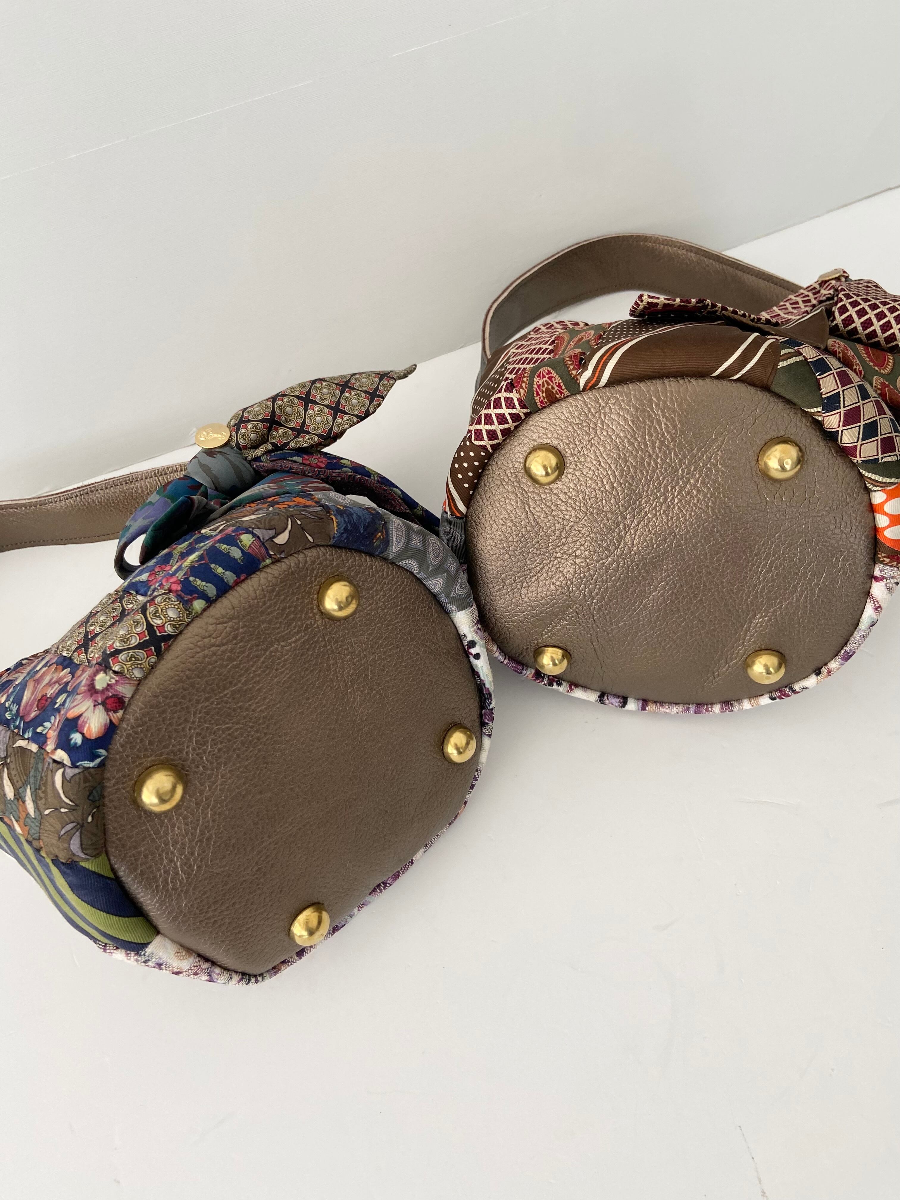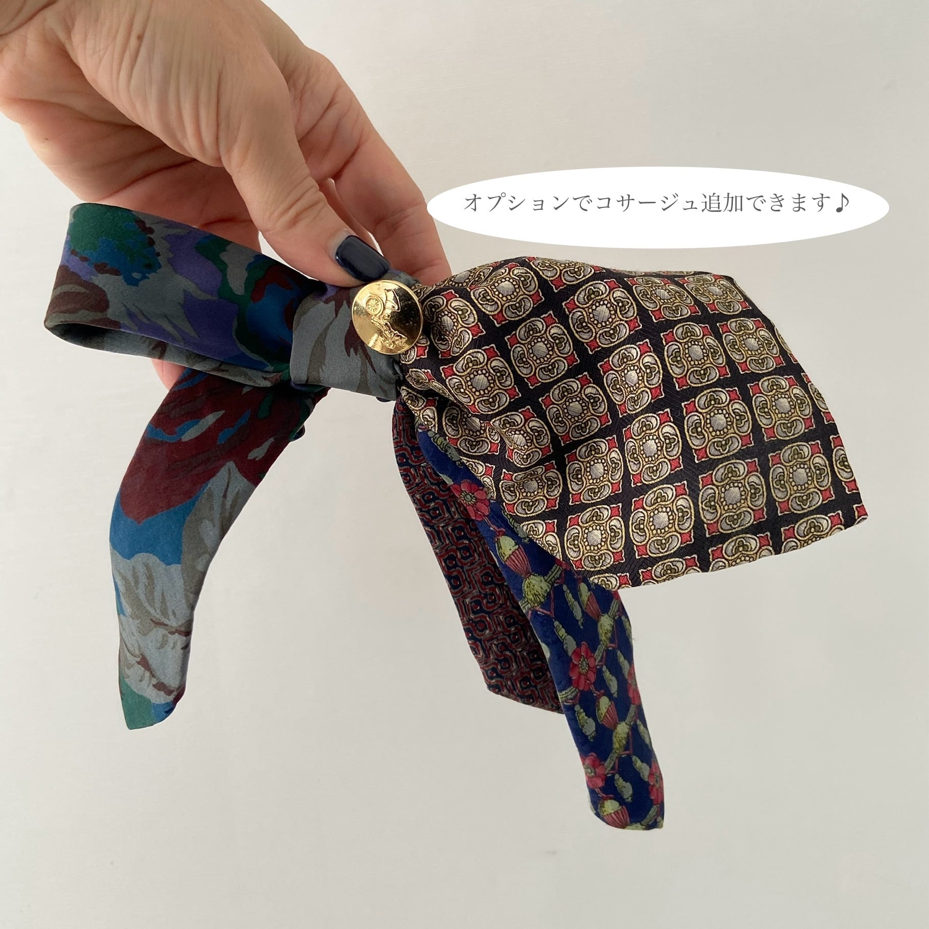 【1点もの】モーヴ系ネクタイ×ジャガード生地*バケツバッグ オプションでコサージュ付にも♡