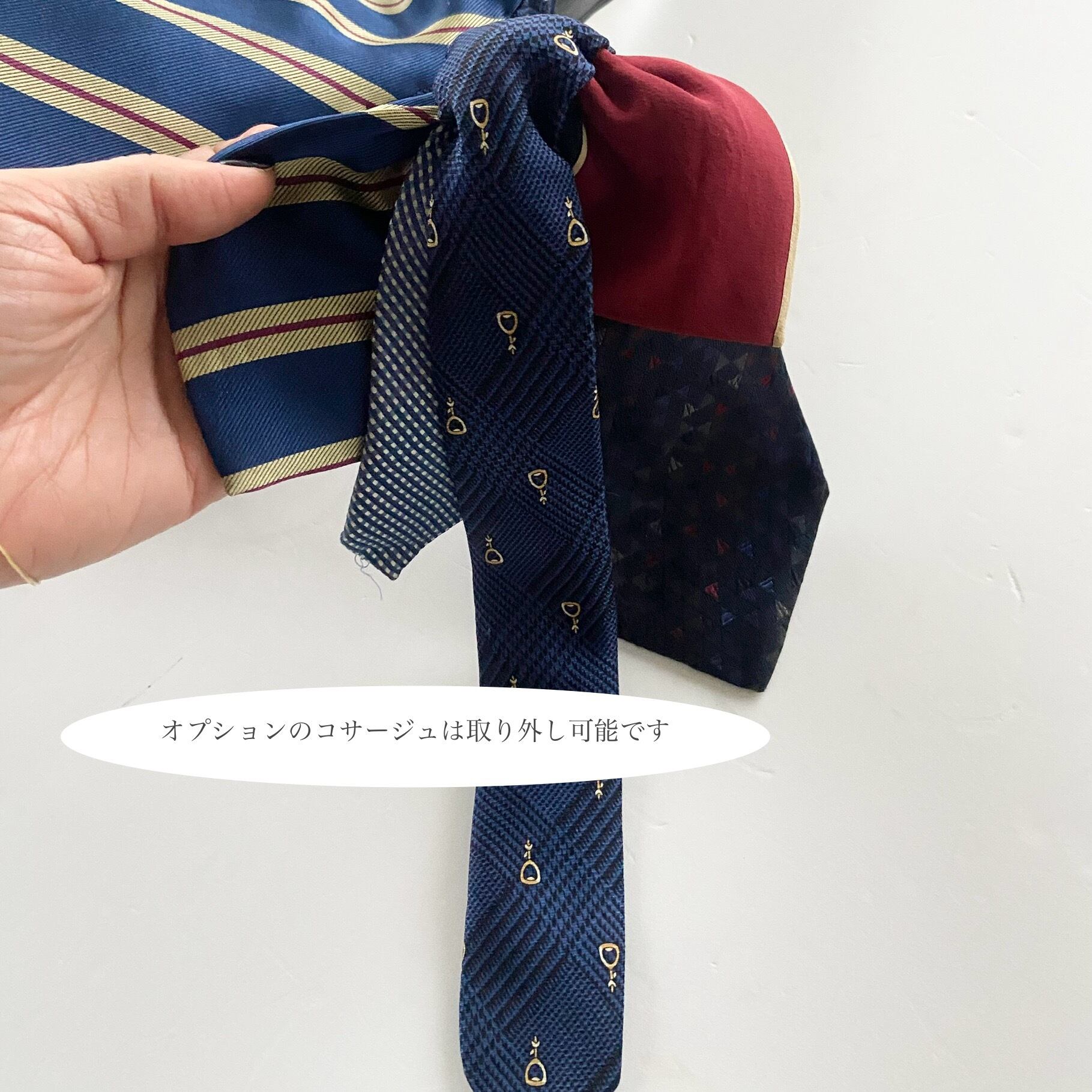 【1点もの】トラッド系ネクタイ×ジャガード生地*バケツバッグ オプションでコサージュ付にも♡