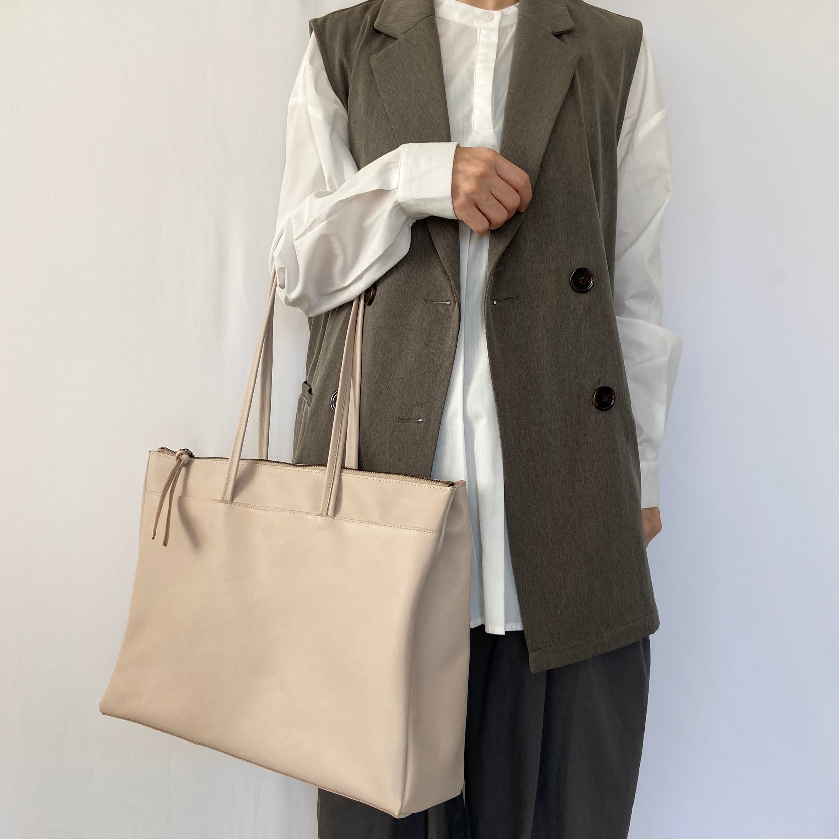 スッキリシンプル*牛革ファスナートートバッグ*オプションにて斜めがけ・底鋲