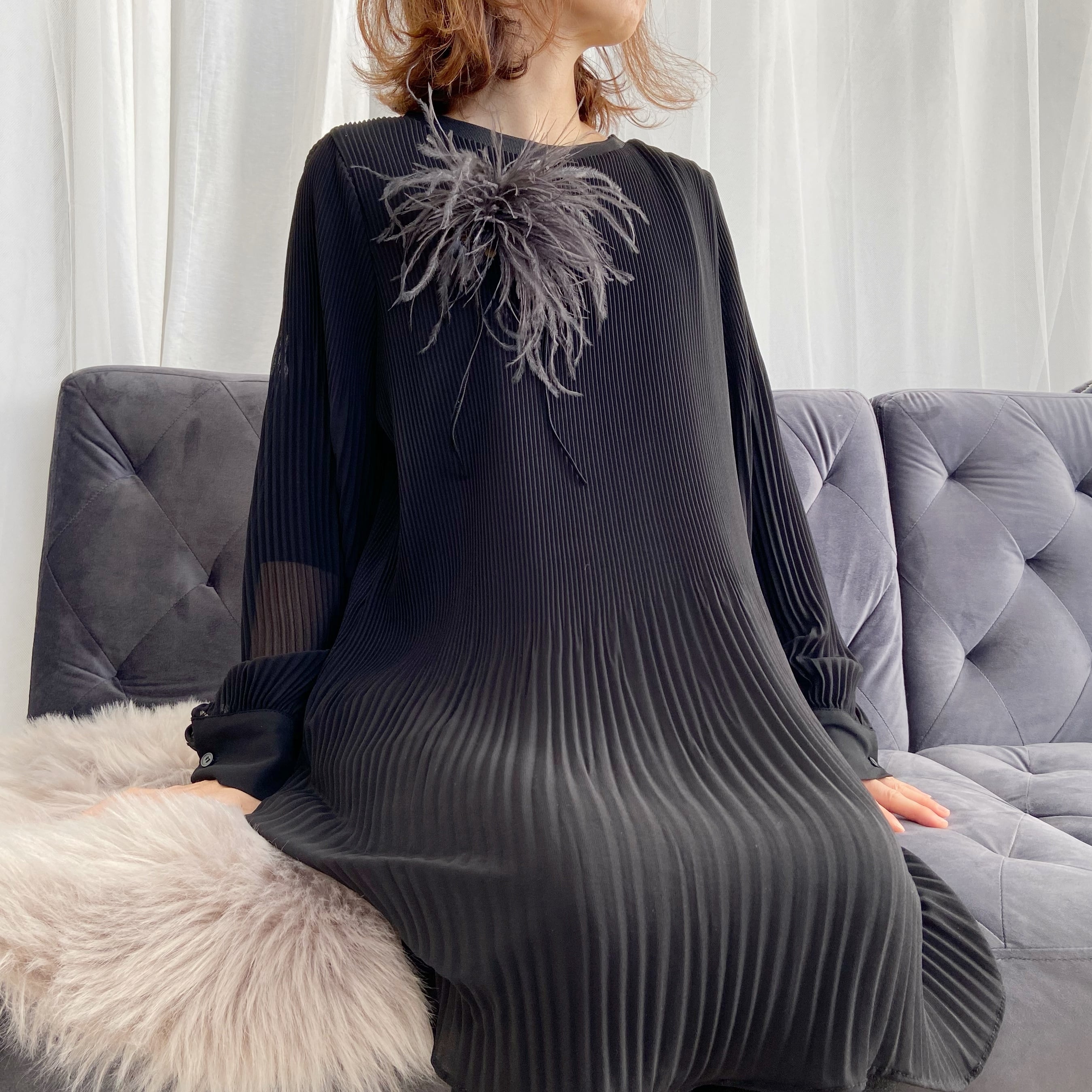 フェザーコサージュ*ダークグレー*取付金具選択可能 フォーマル*入学式*卒園式*結婚式などに オプションにて羽の量ボリュームアップ