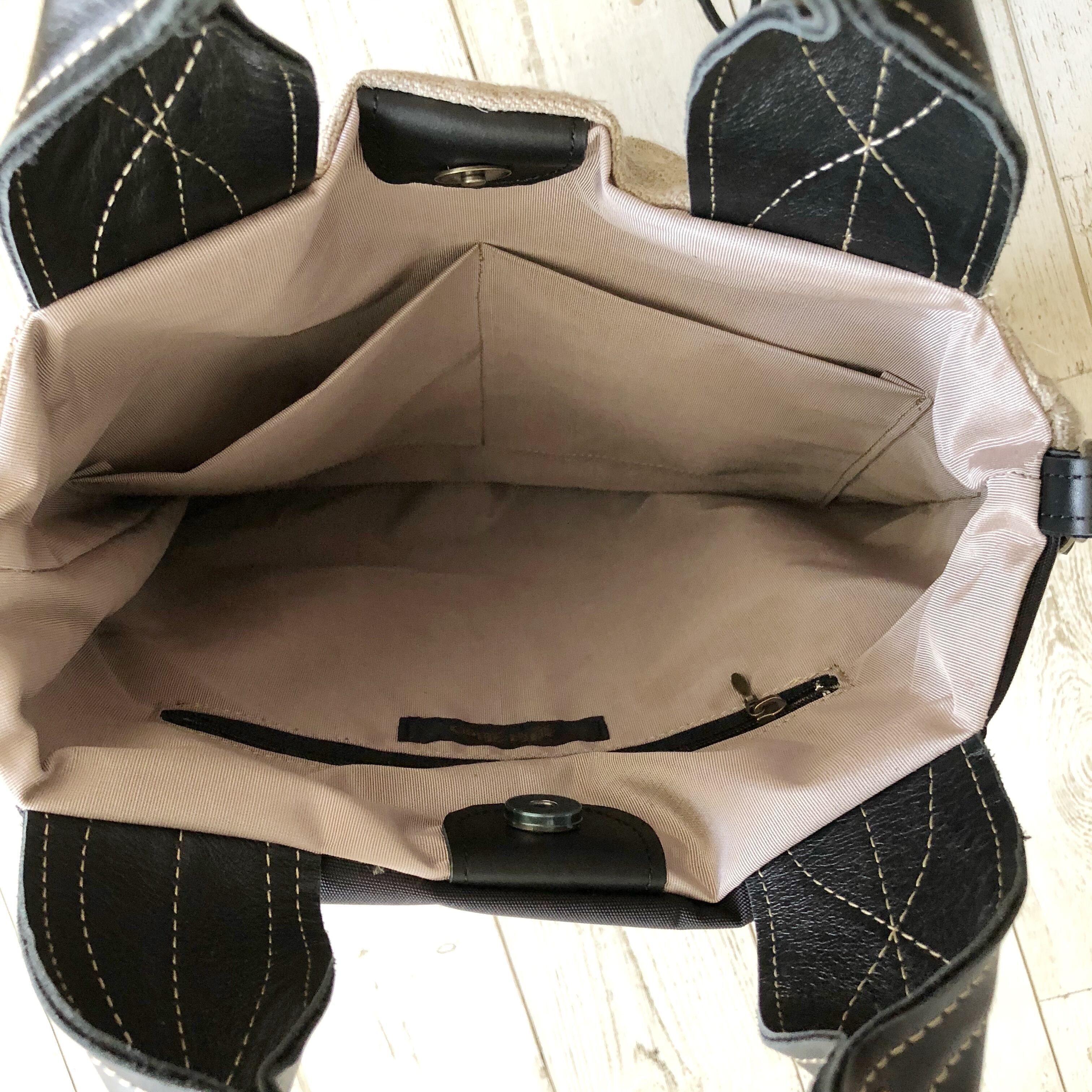 ●ナチュラルなリネンにブラックの馬革が引き締めてくれて落ち着いた印象に