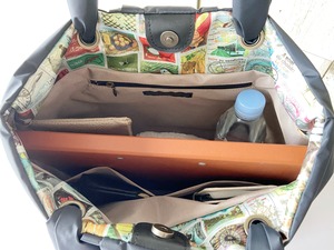 ●内側には仕切りの付いたポケットとファスナーポケットが付いていて整理して収納出来ます。