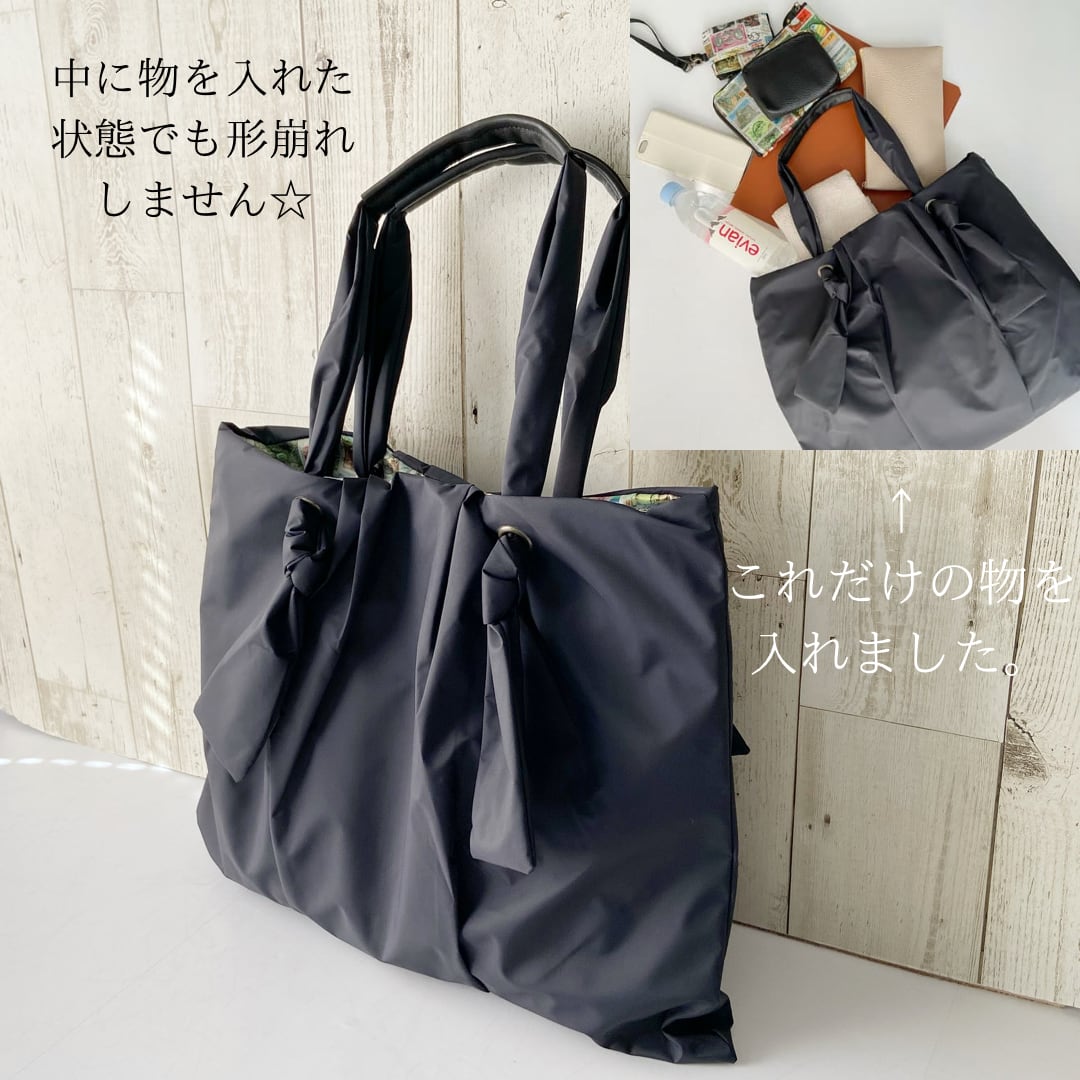 雨でも安心ふんわり*軽量撥水ナイロン*トート*ブラック*A4収納可
