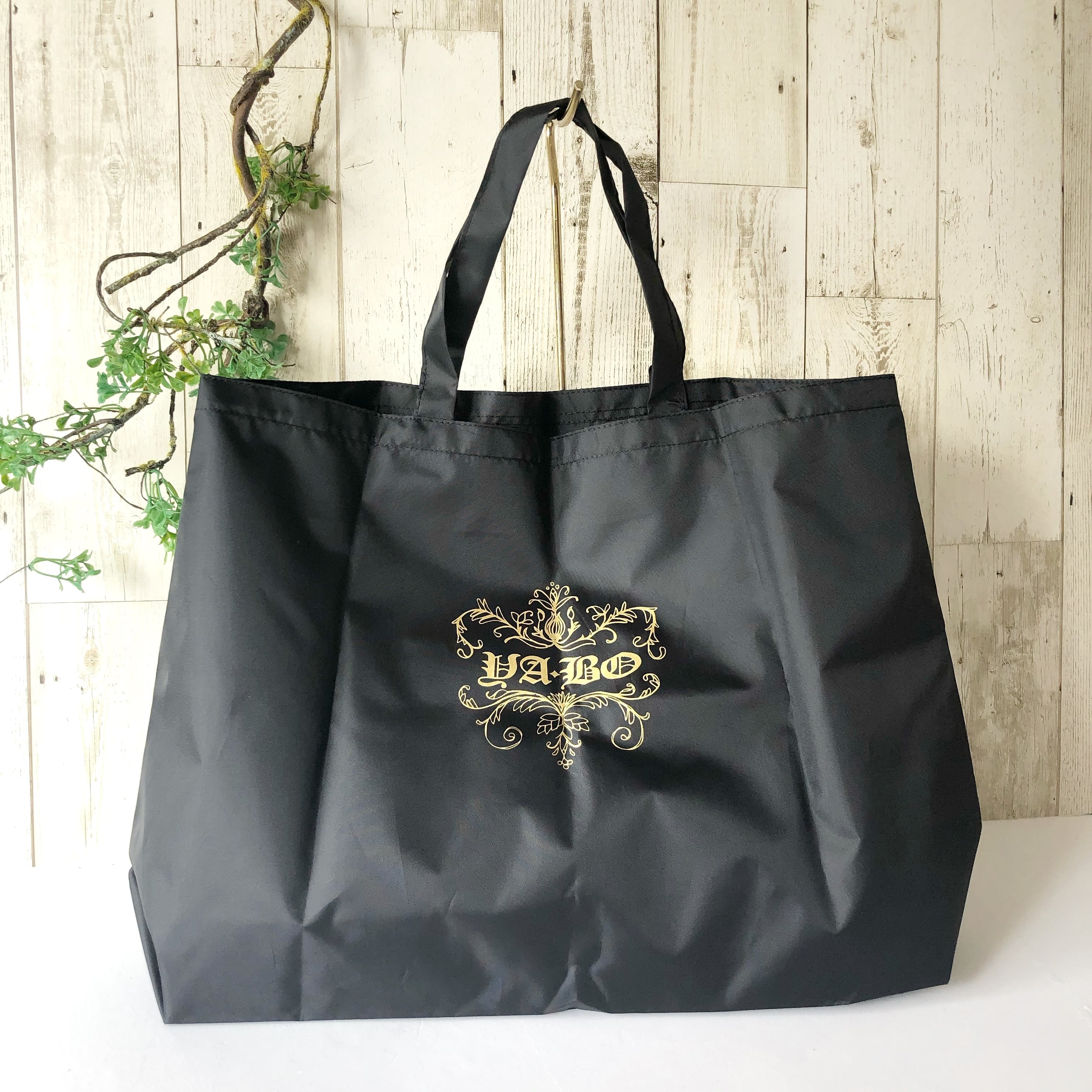 ブラックにゴールドのプリントがシックな印象のエコバッグです。