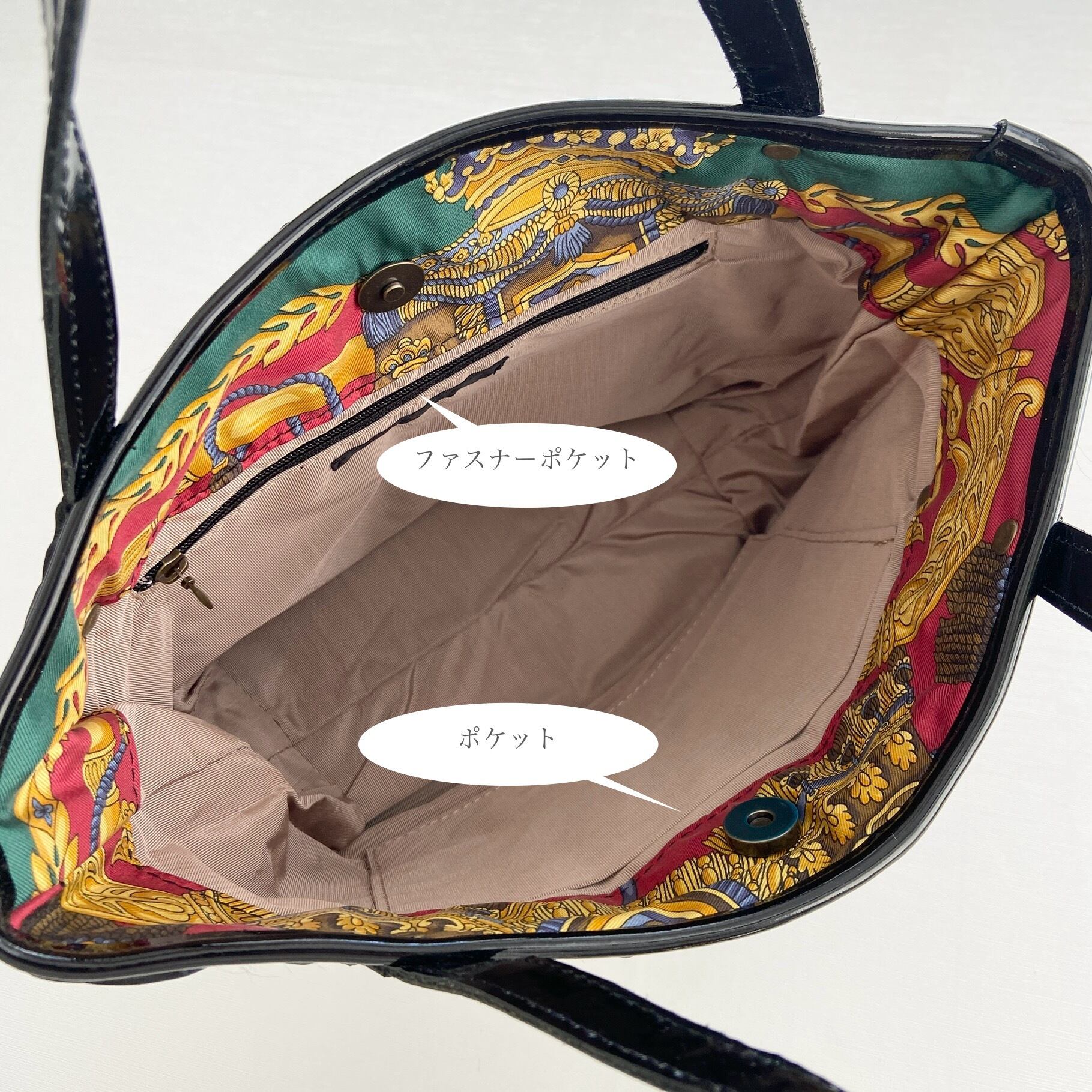 ●内側には仕分けできるポケットとファスナーポケットがついています。