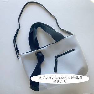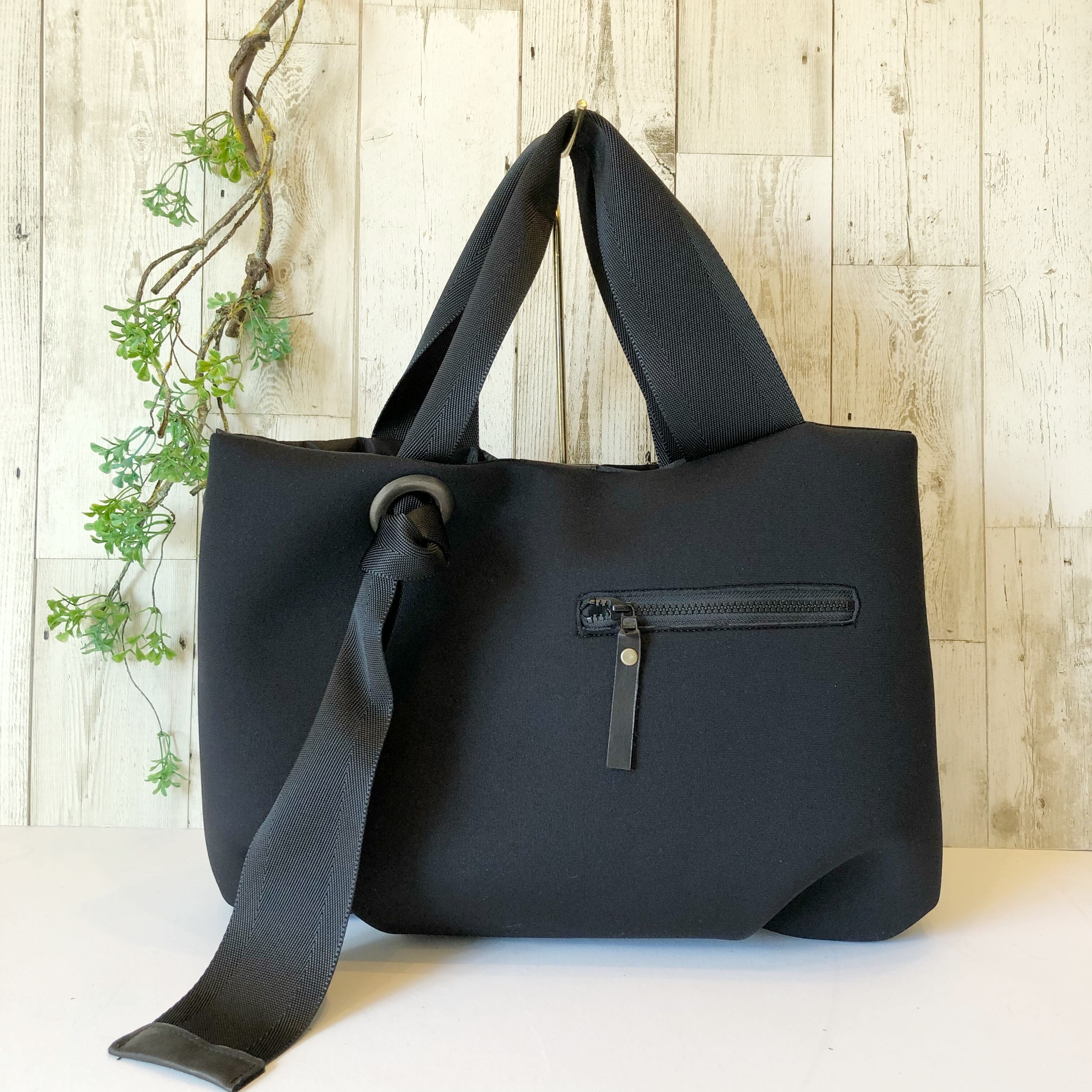 【Mサイズ】ふっくらネオプレーン調素材大きめトート ブラック オプションにて名入れ・斜めがけ・PCポケット追加可能