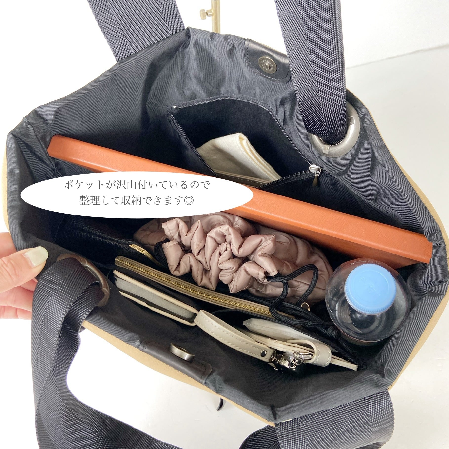 ●内側両側に仕切りの付いたポケットとファスナーポケットが付いていて小物を整理して収納でき、迷子になりません。