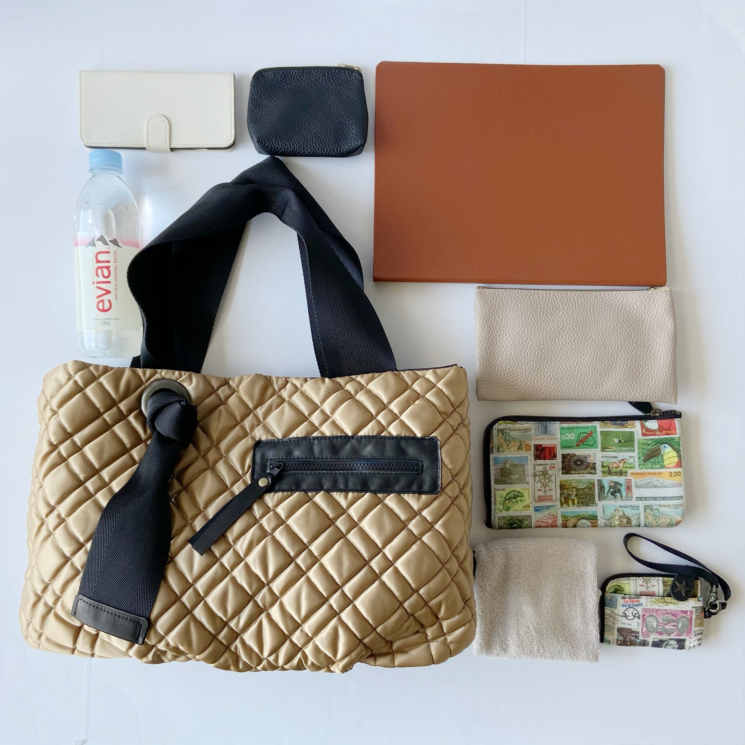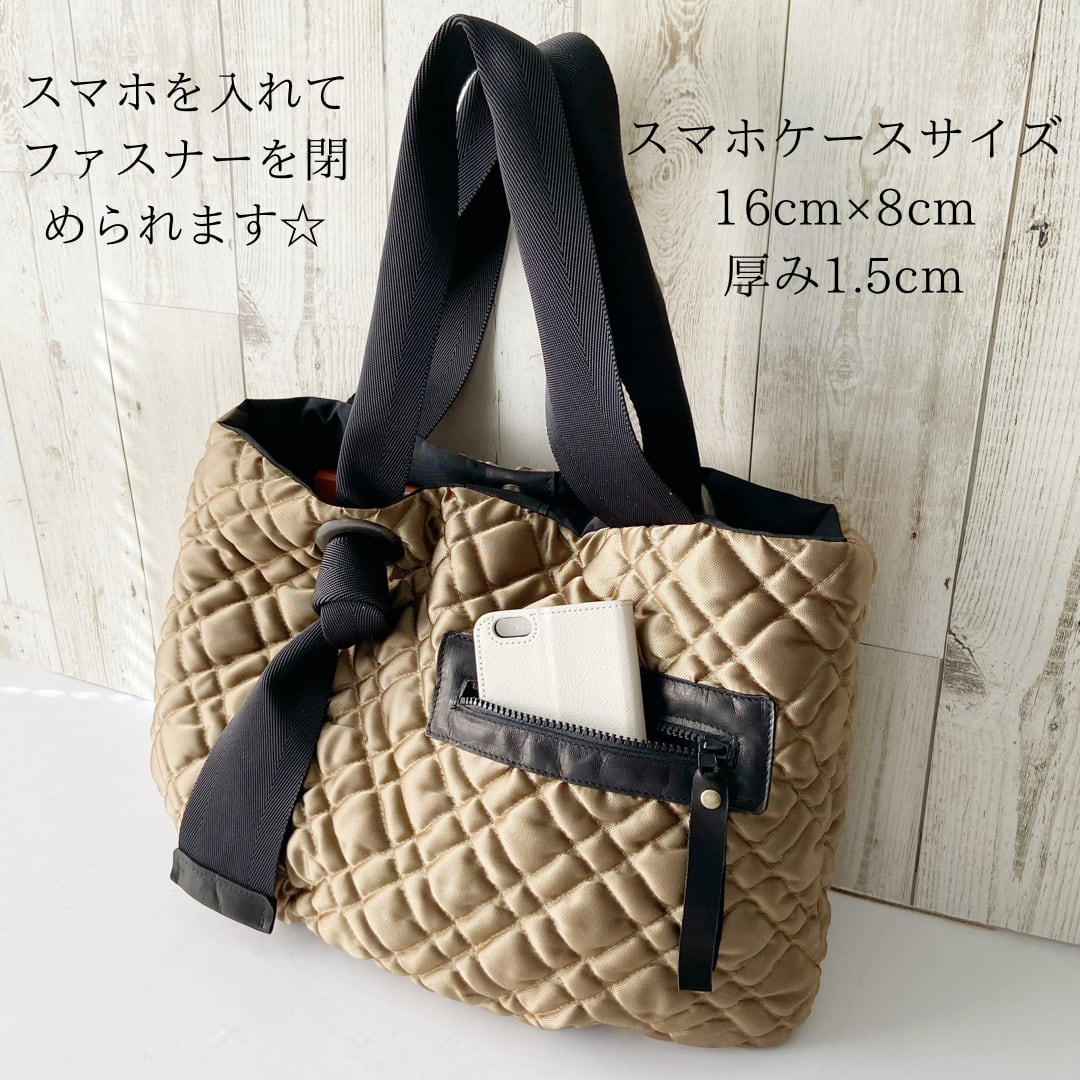 モコモコキルト*大きめトート*ベージュ*A4収納可能*オプションにて斜めがけ・名入れ可能