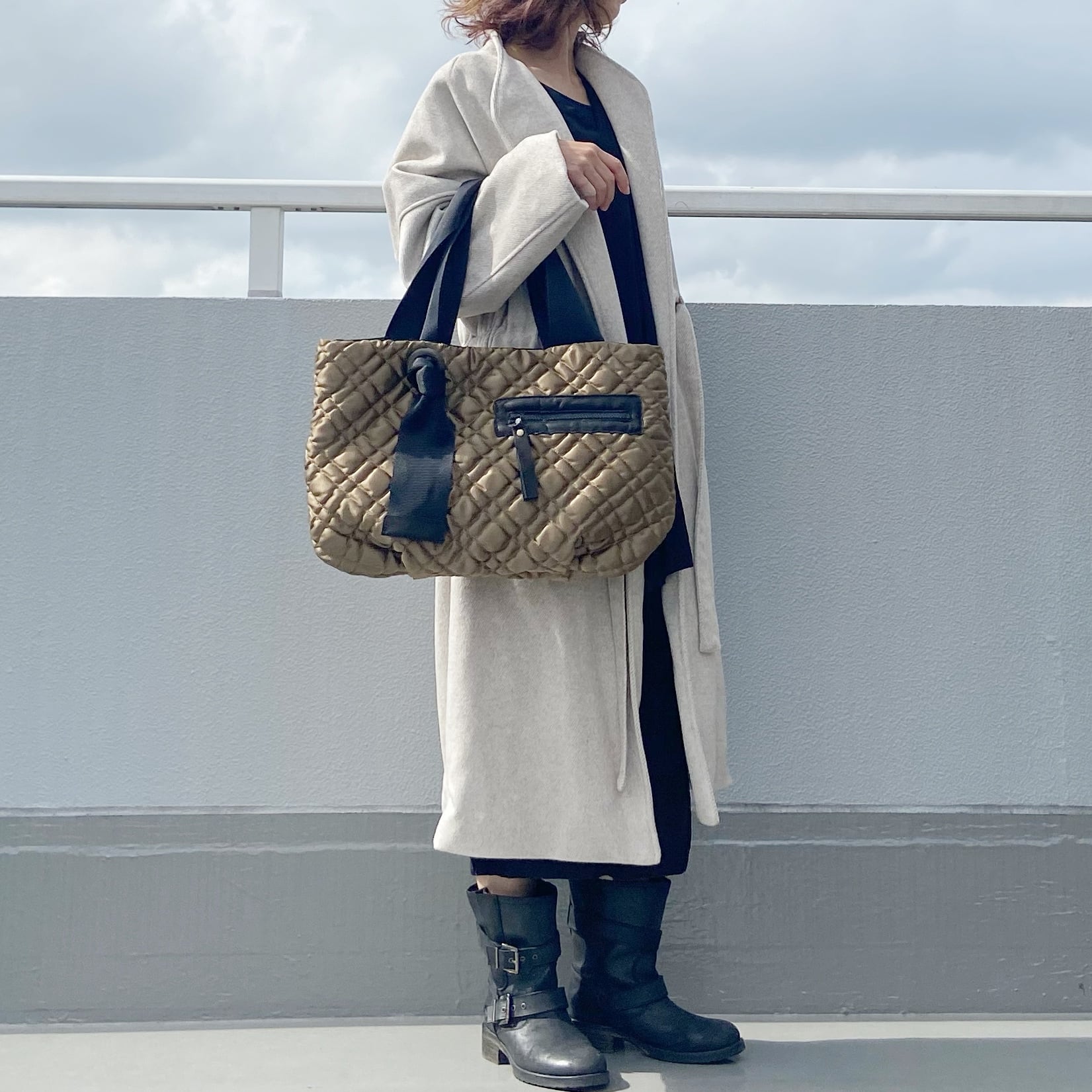 モコモコしたキルトがふんわりと軽く、程よいタックが女性らしいバッグです☆