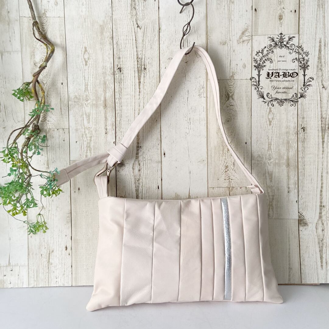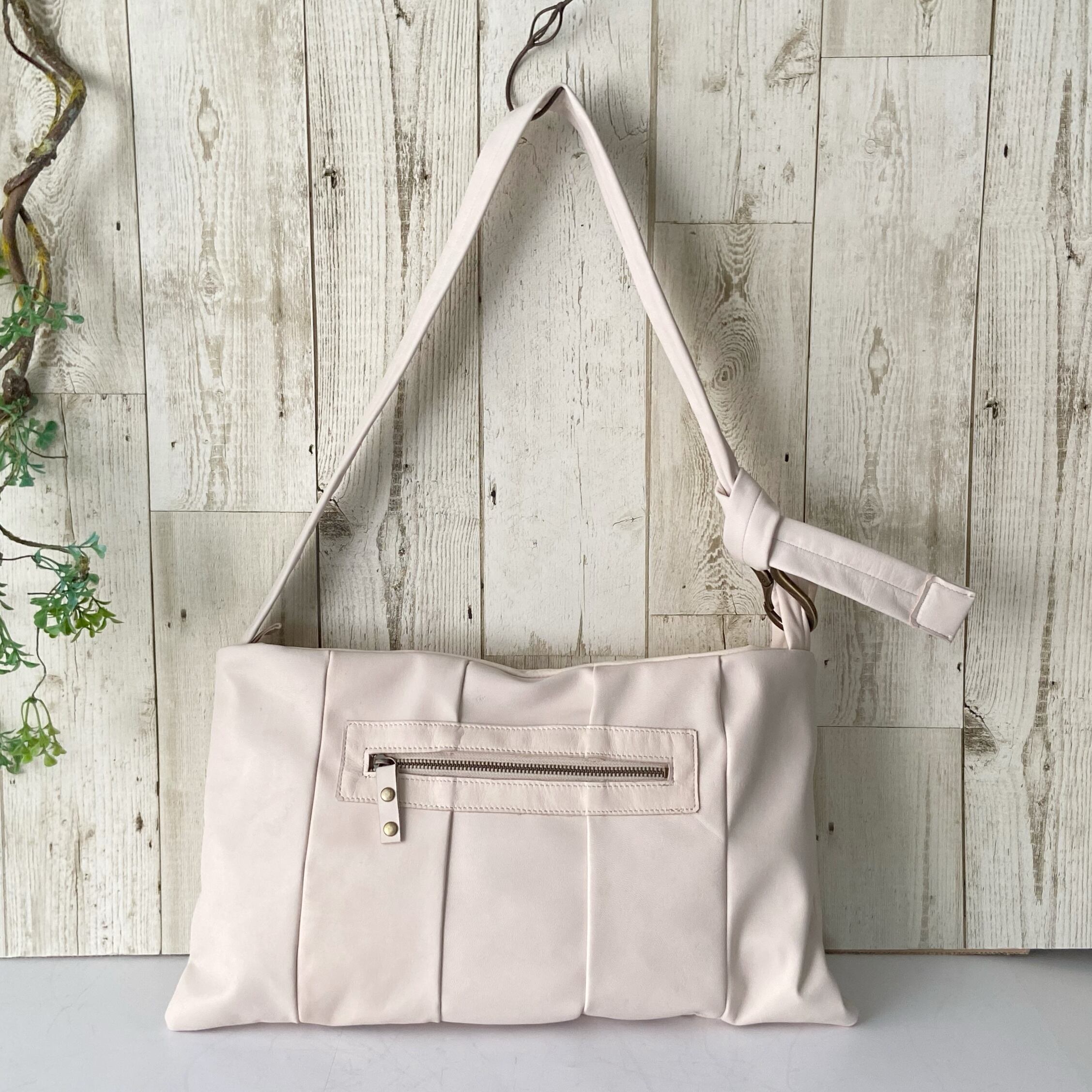 馬革ストライプ★ワンショルダー*オフホワイト*ソフト*軽量