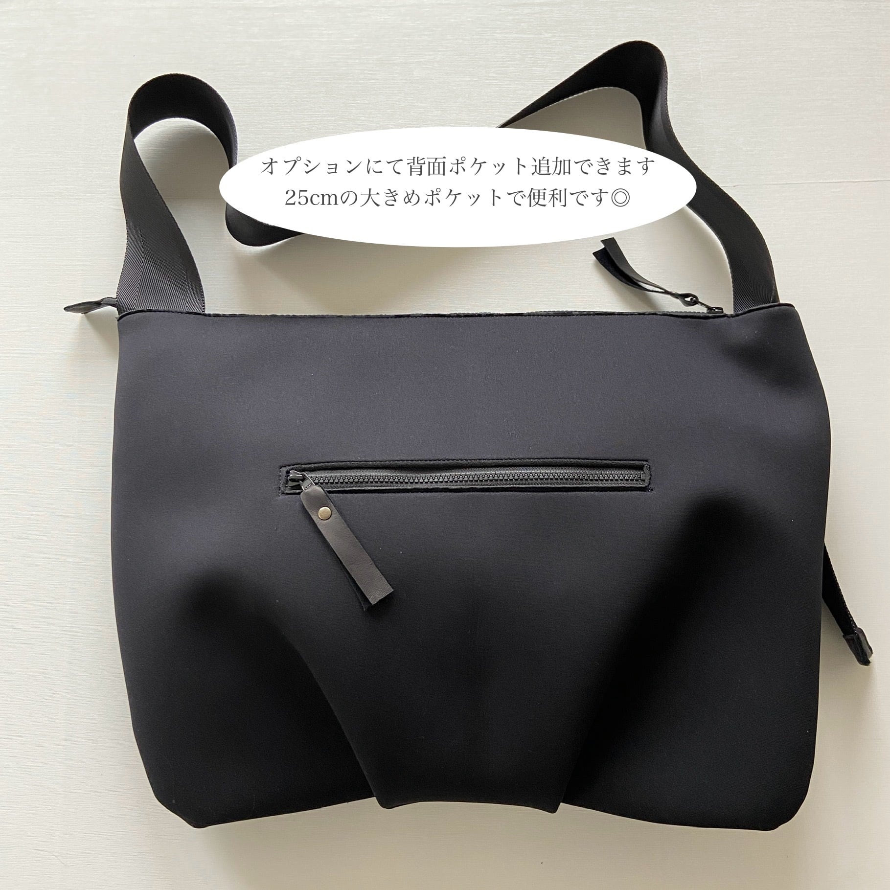 ●背面に25cmファスナーポケットを追加できます。