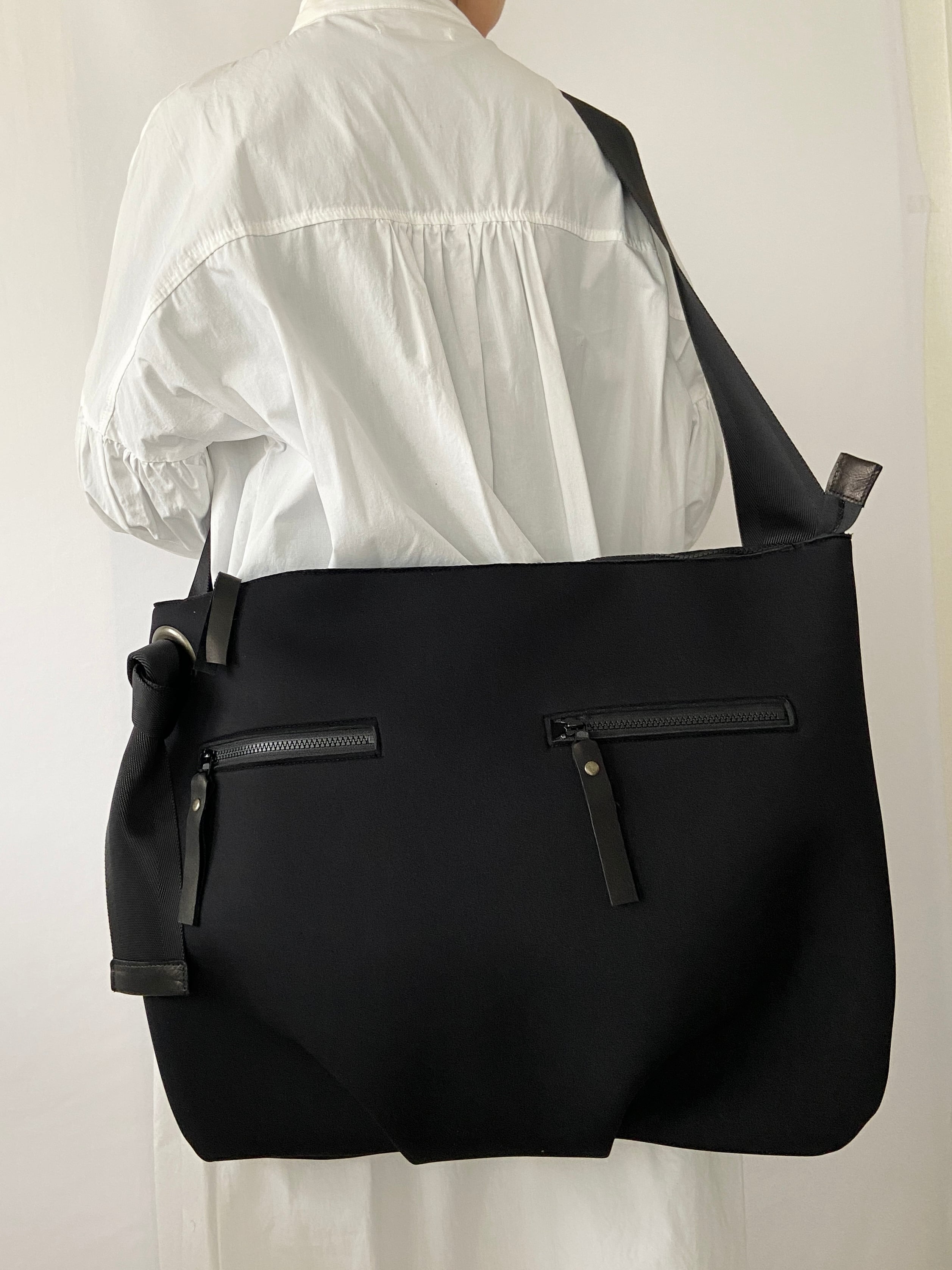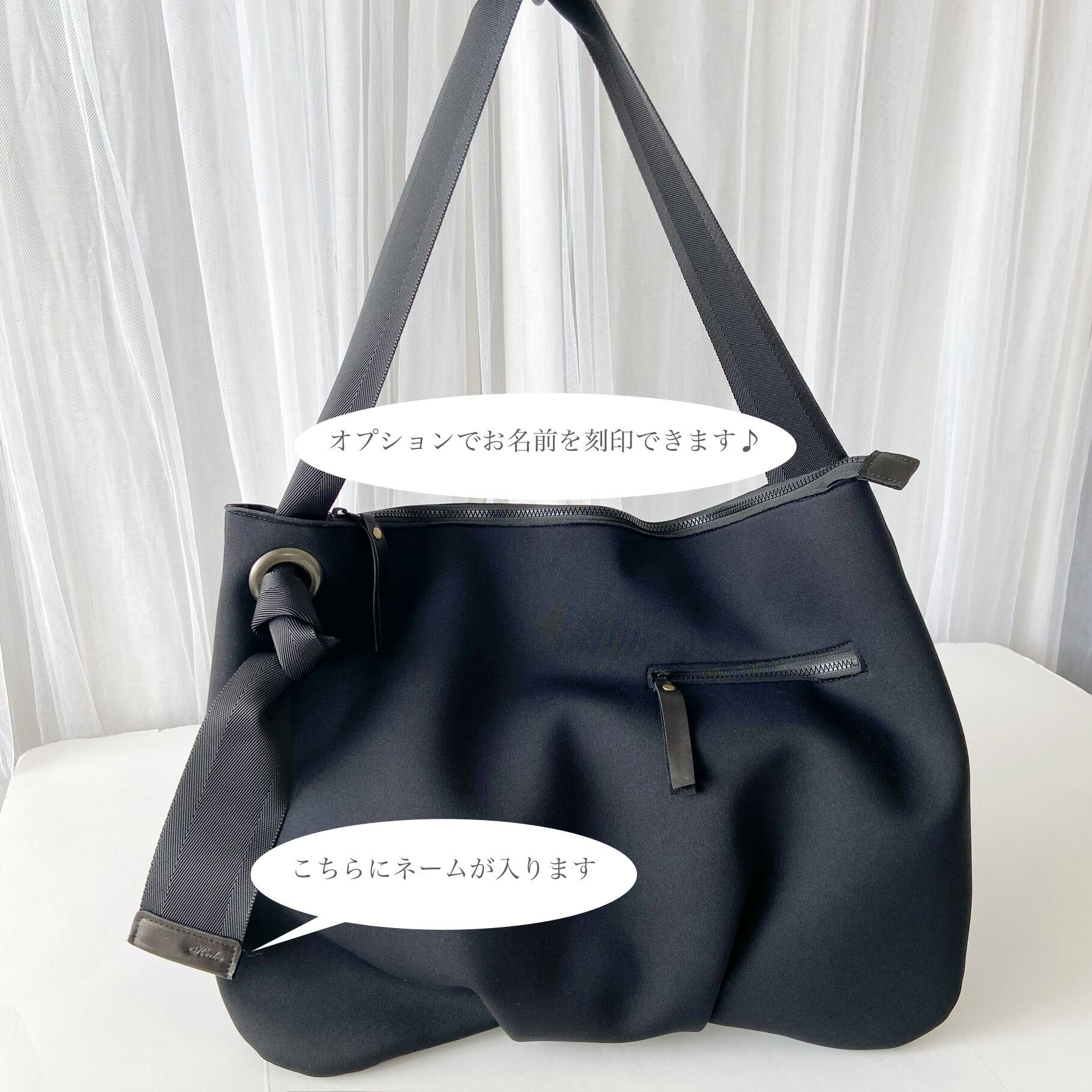 ネオプレーン調素材 Lサイズ ビッグサイズショルダー*ブラック*A4収納可能*オプションにて名入れ可能