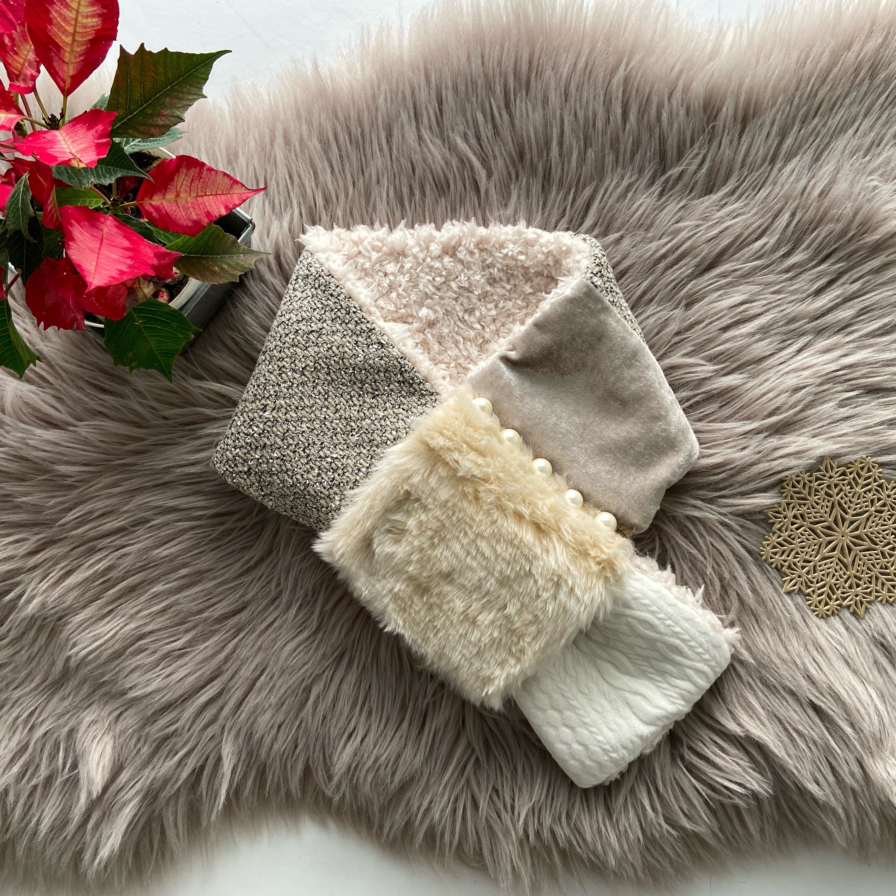 モコモコの可愛いファーといろいろな素材を組み合わせたアクセサリー感覚の女性らしいコンパクトマフラーです☆