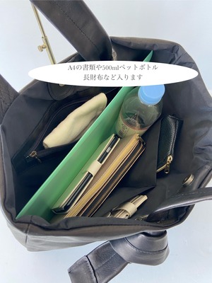 ●コンパクトながら、長財布、500mlペットボトル、A4サイズの書類、タブレットなど収納可能◎