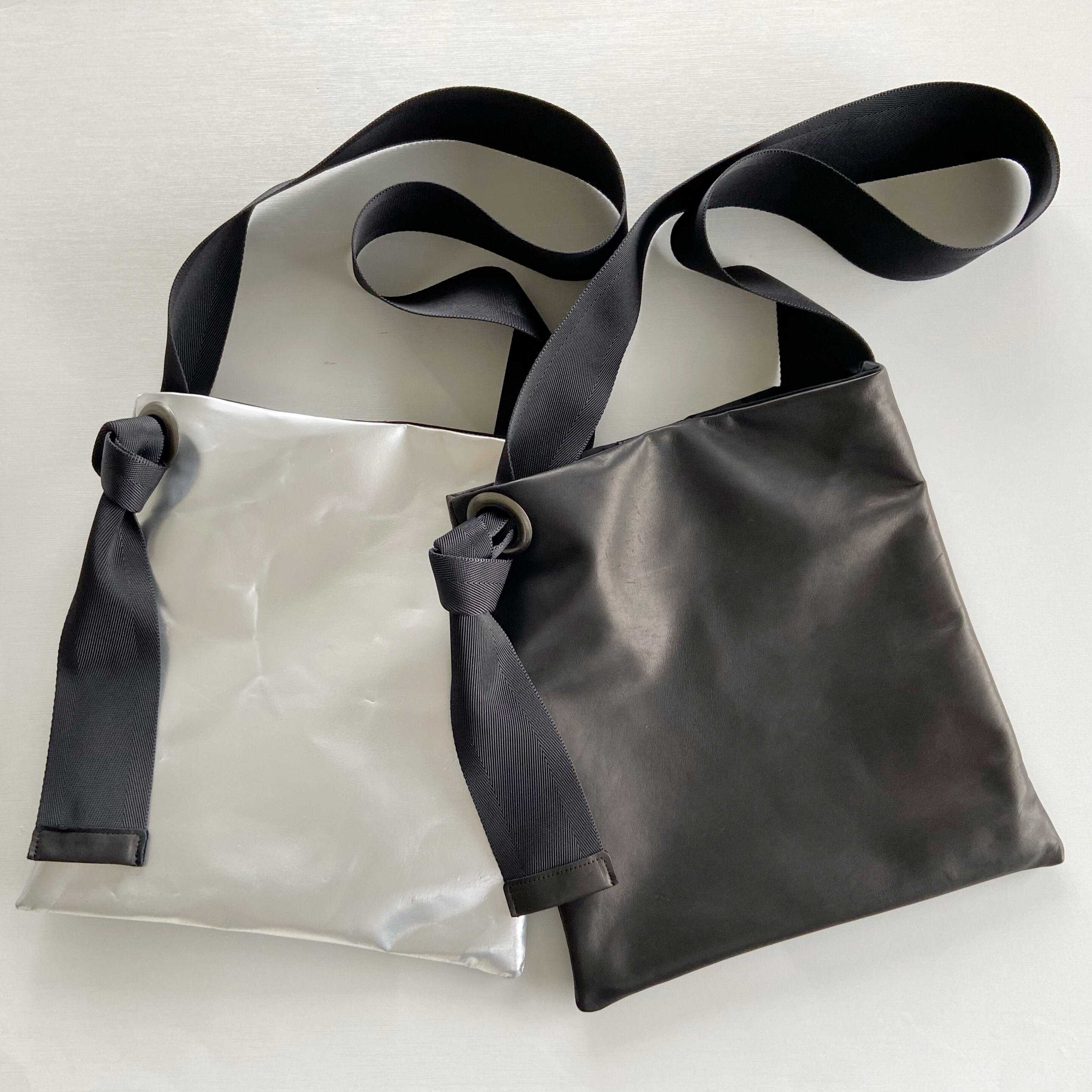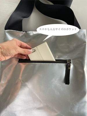 メタリックシルバーはピッグレザーに箔加工を施してあります。
