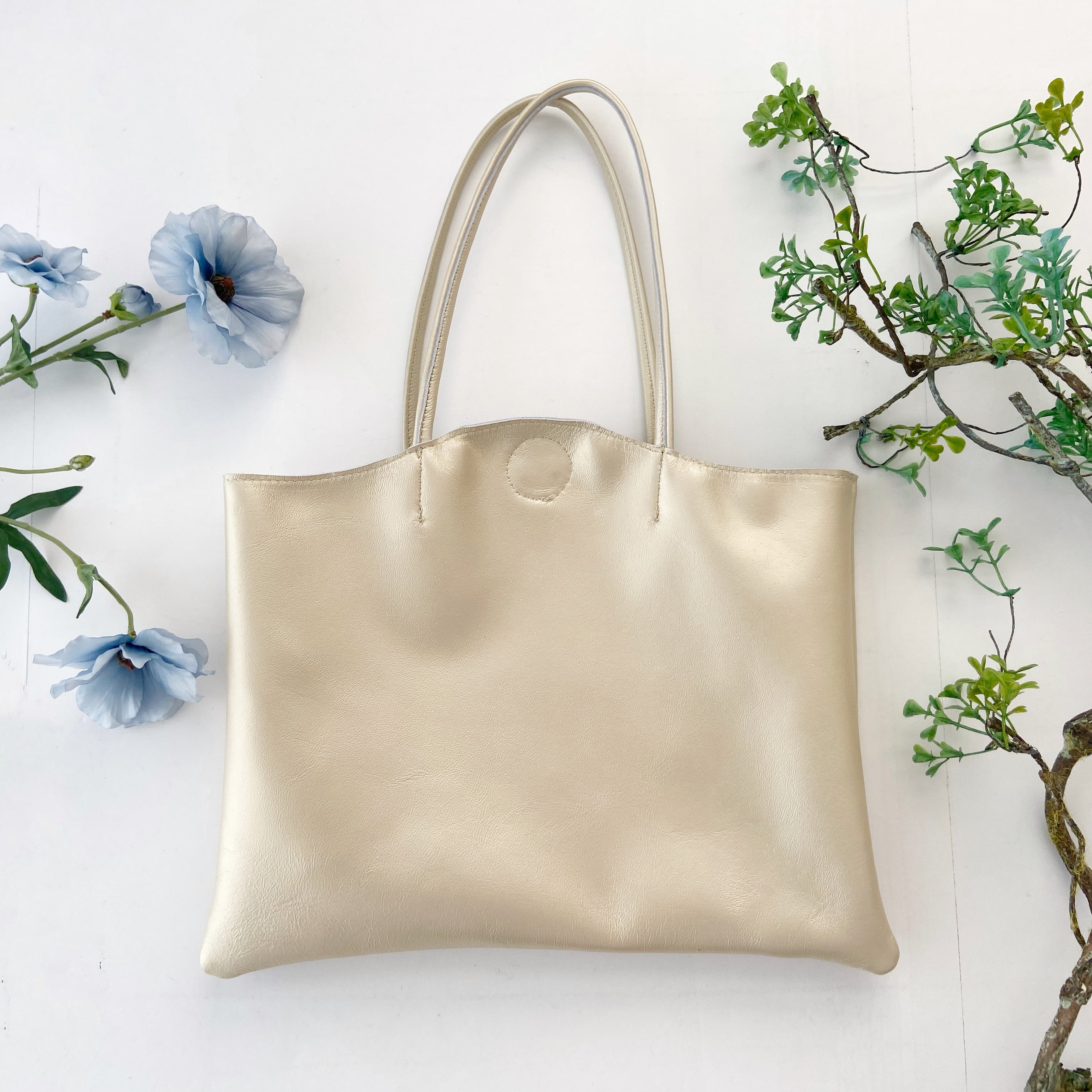 ふっくらした羊革を一枚仕立てで作ったとても軽いトートバッグです。