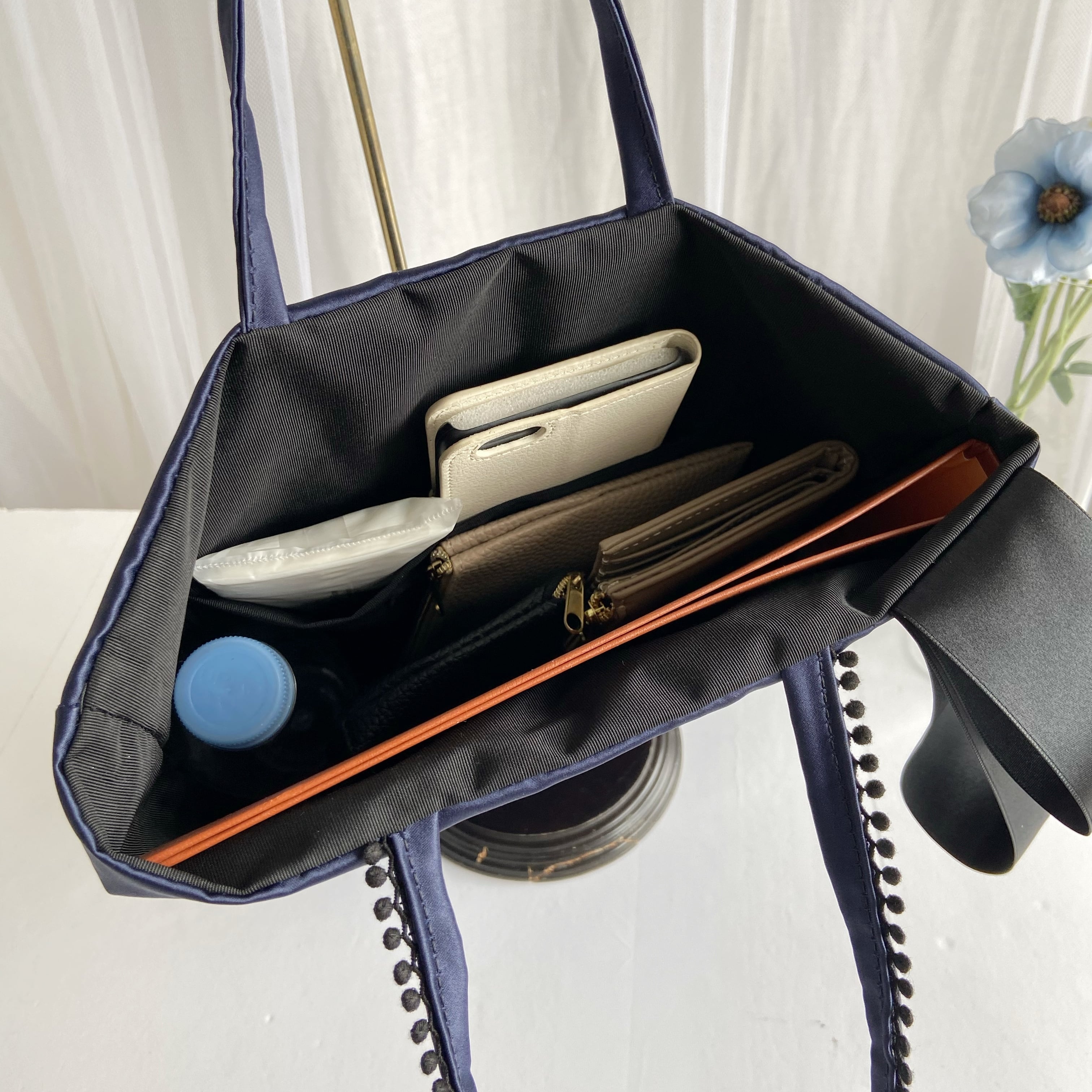 ●A4サイズファイルやスリッパ、その他ちょっとした荷物も入るサイズ感なので、学校の保護者会や集まり事などにも使えます。