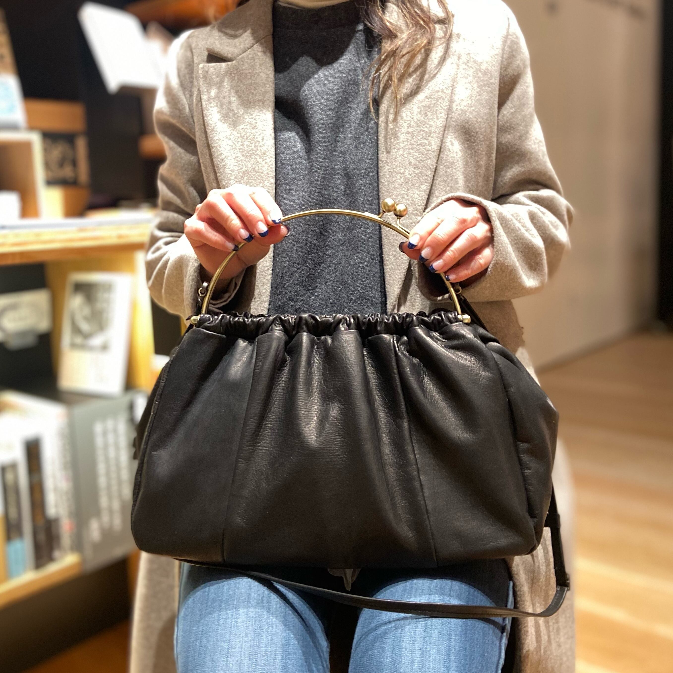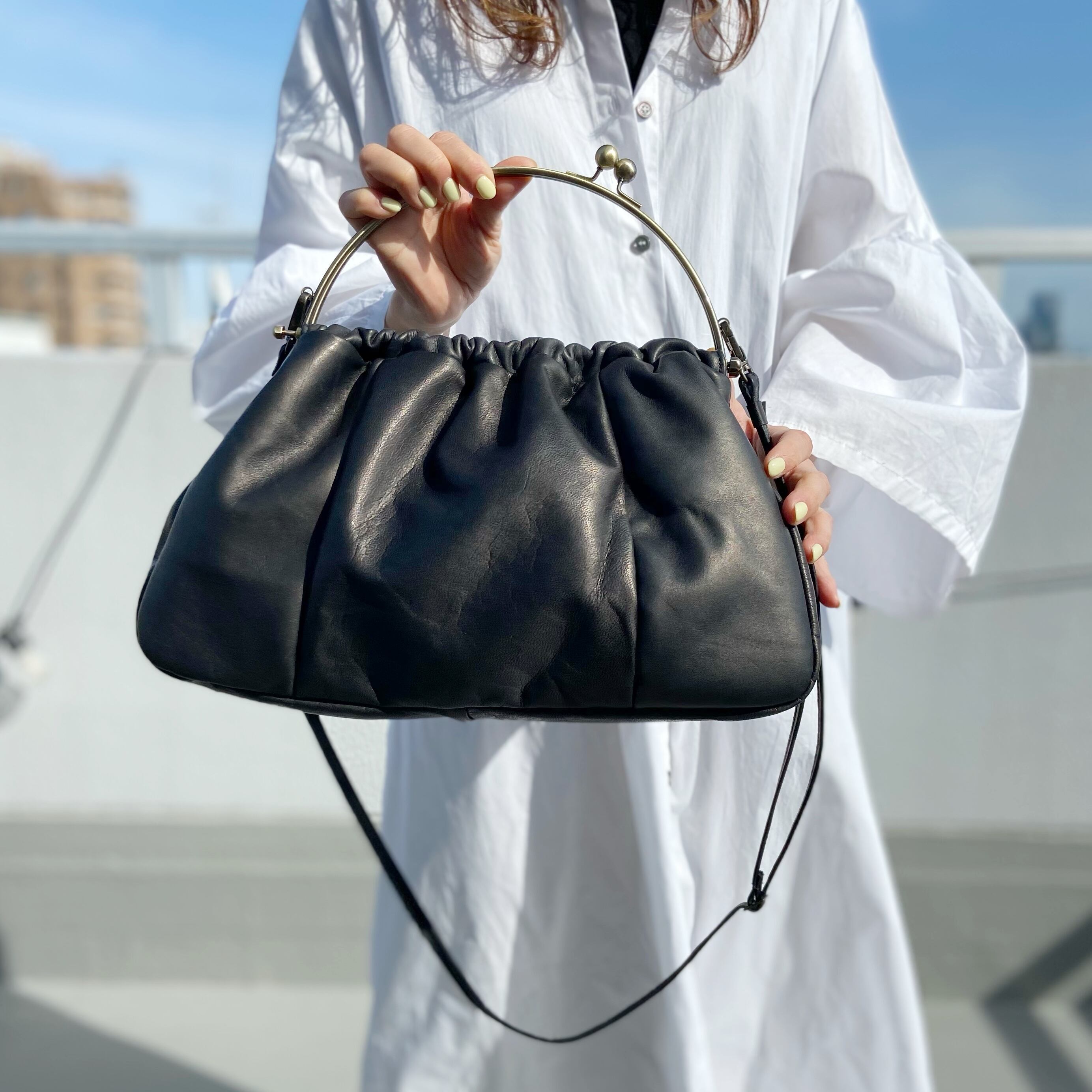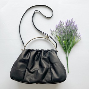馬革*口金ふんわりバッグ*ブラック*2way*アンティーク調