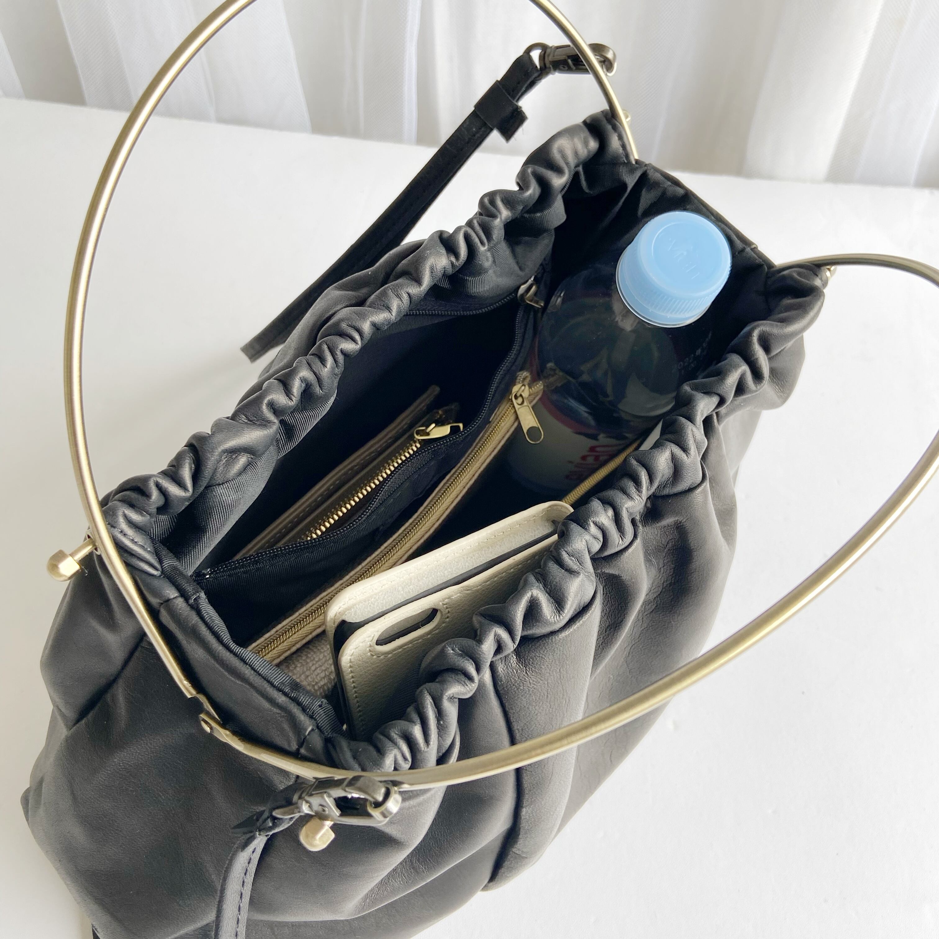 ●口元のギャザーがふんわり可愛いフォルムと収納力をアップしています。