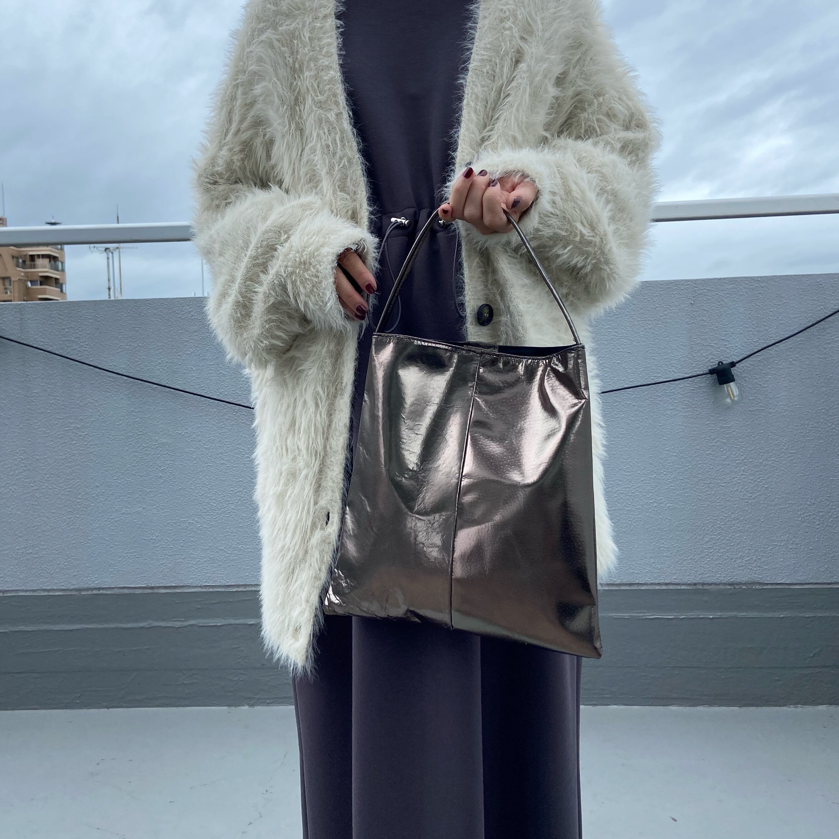 華奢な持ち手と素材感がカッコよく、コーディネイトのポイントになります。