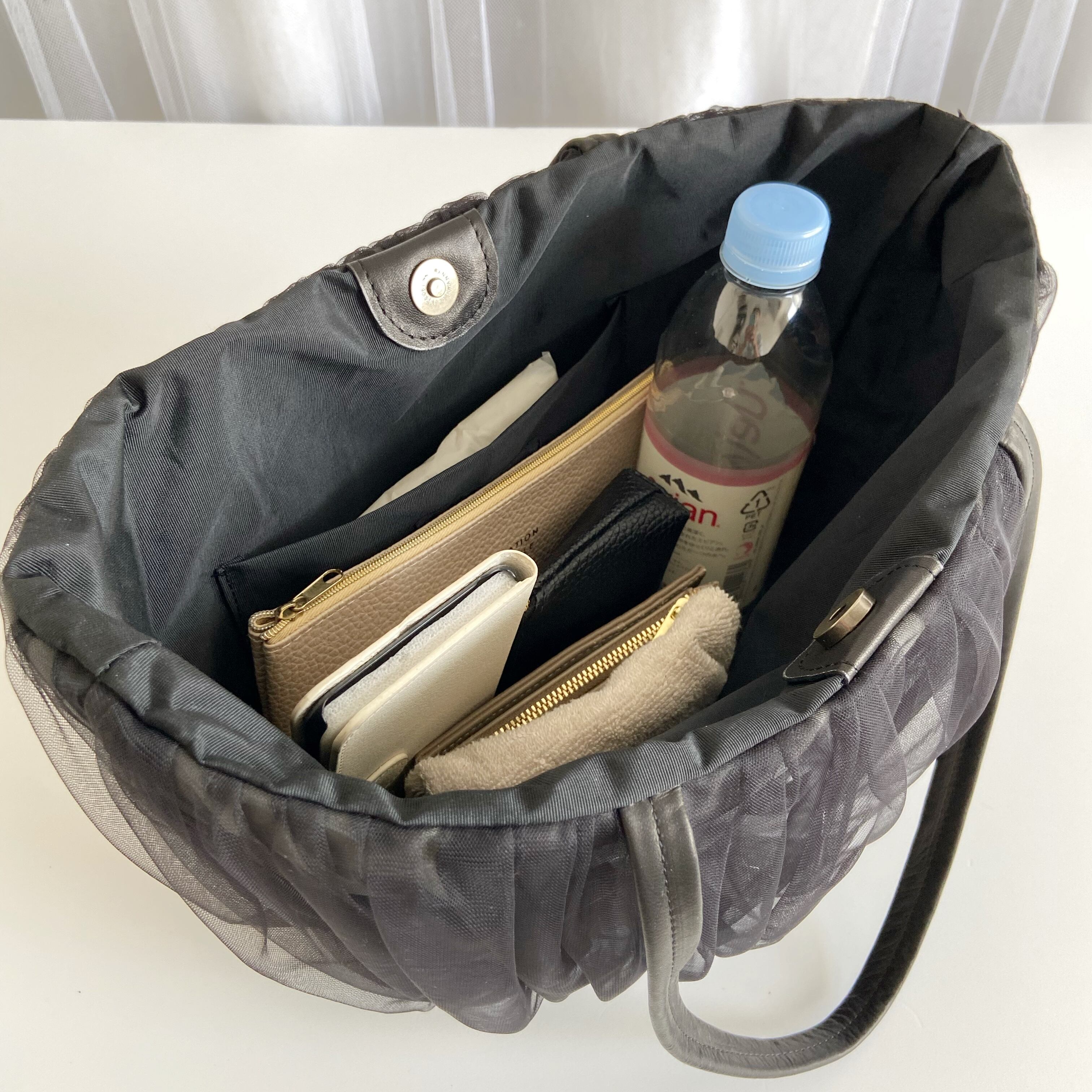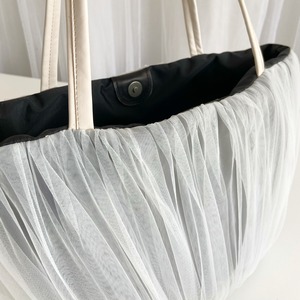 ●柔らかな印象のチュールに華奢な持ち手のスッキリシンプルなデザインで、幅広いスタイルに似合います。