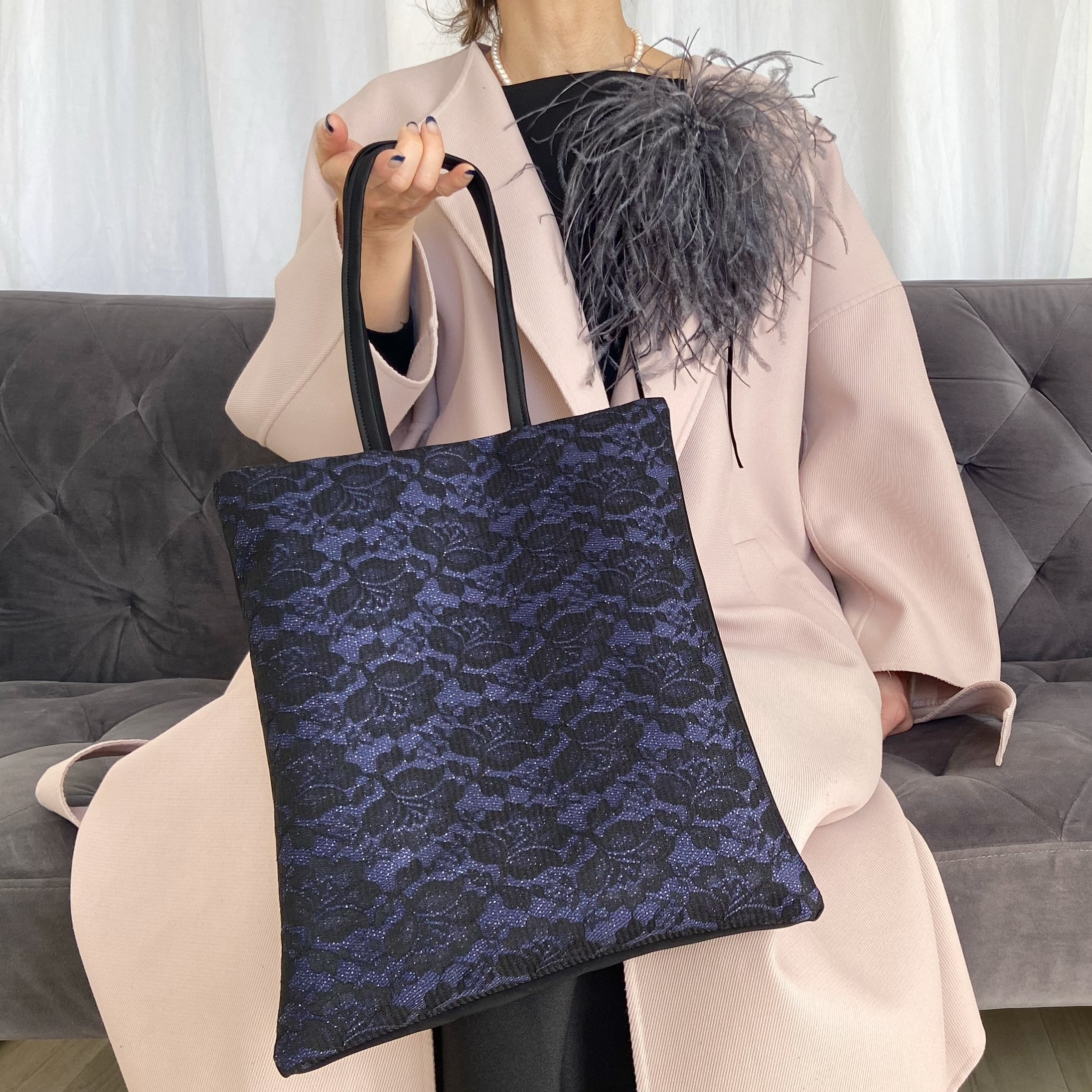 フォーマルサブバッグ★レース ネイビー&ブラック*A4収納可*軽量*結婚式*卒入学式*冠婚葬祭